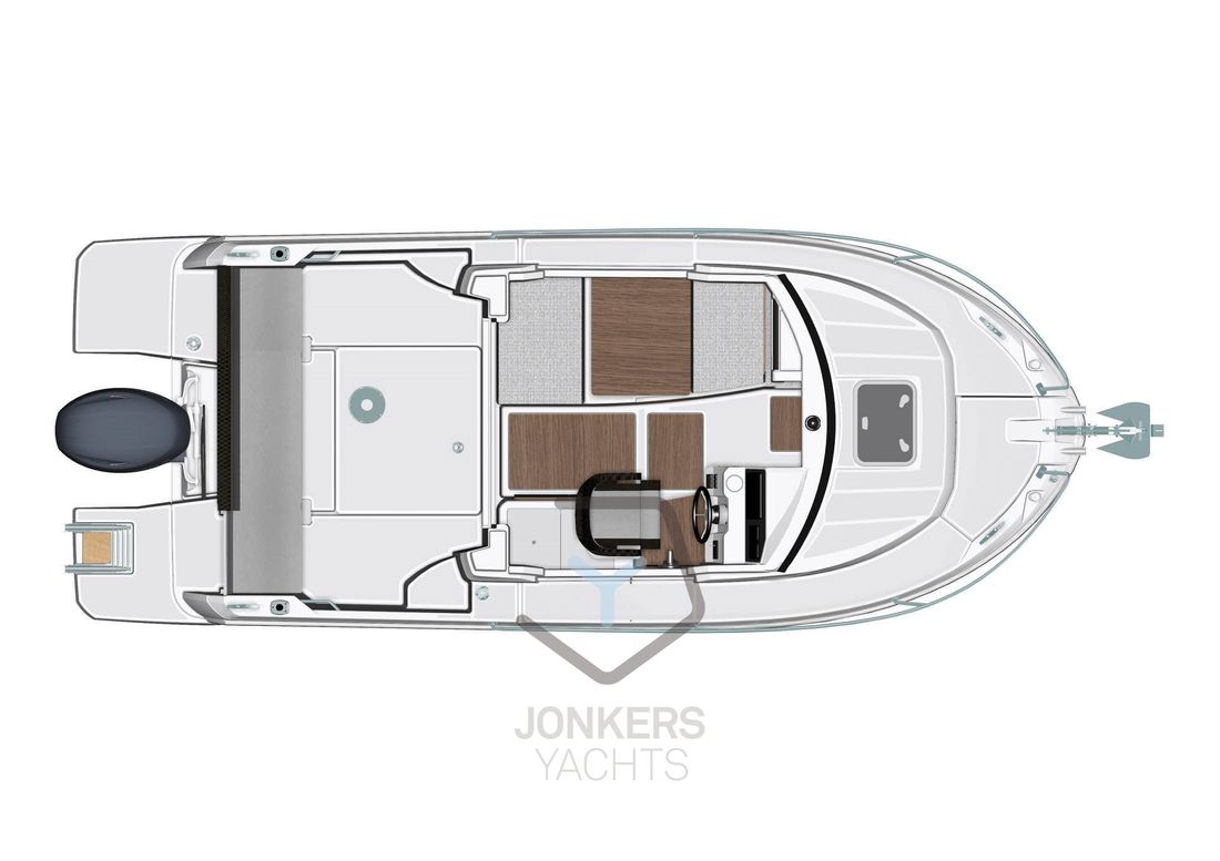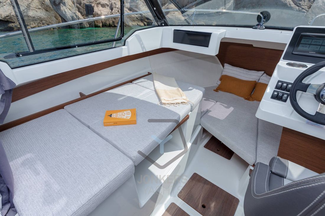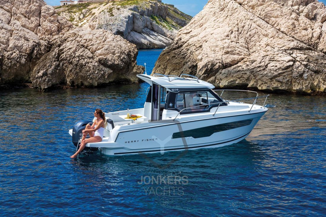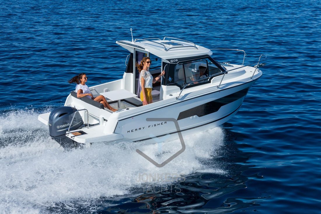 all the qualities of a great Jeanneau Have you long dreamed of exploring new horizons and sharing special moments with your loved ones? The new Merry Fisher 605 Series 2 is perfectly trailerable for any journey, made for you! You will appreciate her elegant design and smart interior layout. Enjoy sharing moments with family and friends in her spacious and inviting U-shaped cockpit saloon, which transforms into a sun deck. The sliding bench seat optimizes the space on board for maximum comfort. The generous flat aft deck provides easy access to the water. Inside, a bright, tranquil retreat offers uninterrupted views of the horizon. You'll feel right at home, with plenty of equipment and sleeping accommodations for up to four people on board.... enough to meet all your expectations! Indeed, the new Merry Fisher 605 Series 2 has all the qualities of a great Jeanneau.