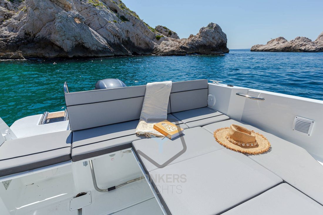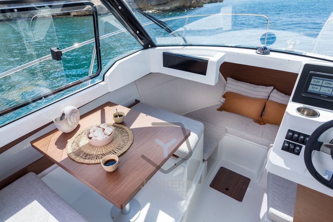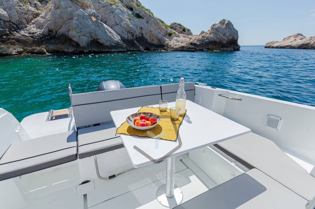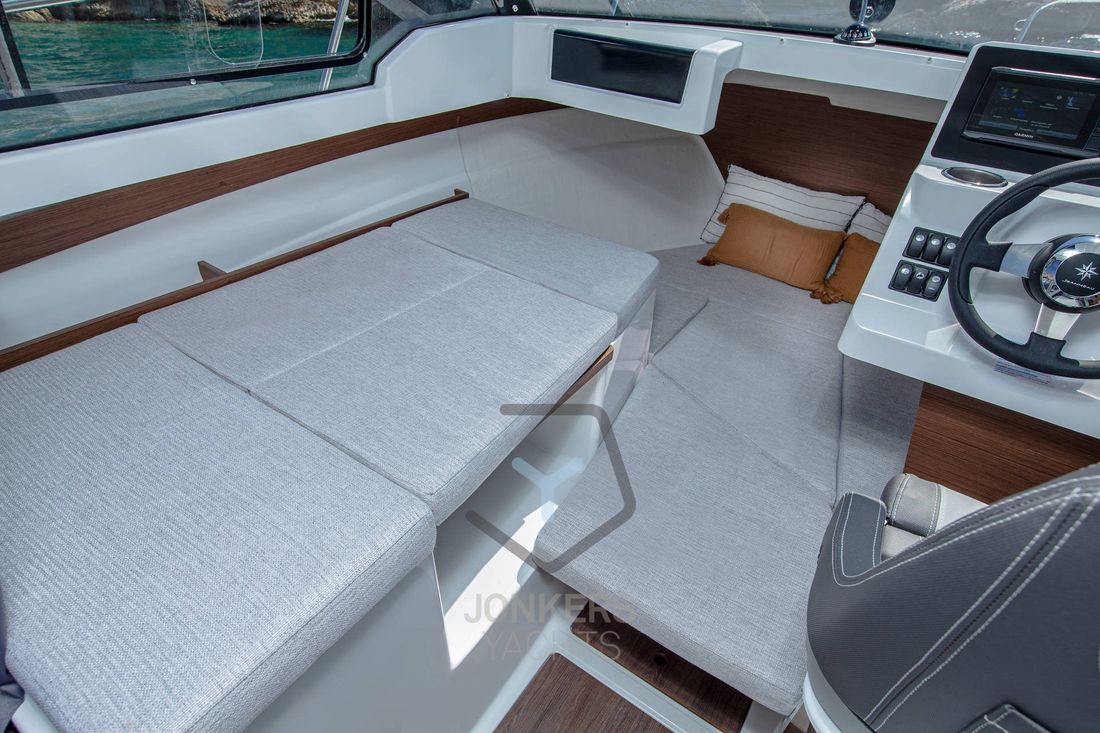 all the qualities of a great Jeanneau Have you long dreamed of exploring new horizons and sharing special moments with your loved ones? The new Merry Fisher 605 Series 2 is perfectly trailerable for any journey, made for you! You will appreciate her elegant design and smart interior layout. Enjoy sharing moments with family and friends in her spacious and inviting U-shaped cockpit saloon, which transforms into a sun deck. The sliding bench seat optimizes the space on board for maximum comfort. The generous flat aft deck provides easy access to the water. Inside, a bright, tranquil retreat offers uninterrupted views of the horizon. You'll feel right at home, with plenty of equipment and sleeping accommodations for up to four people on board.... enough to meet all your expectations! Indeed, the new Merry Fisher 605 Series 2 has all the qualities of a great Jeanneau.