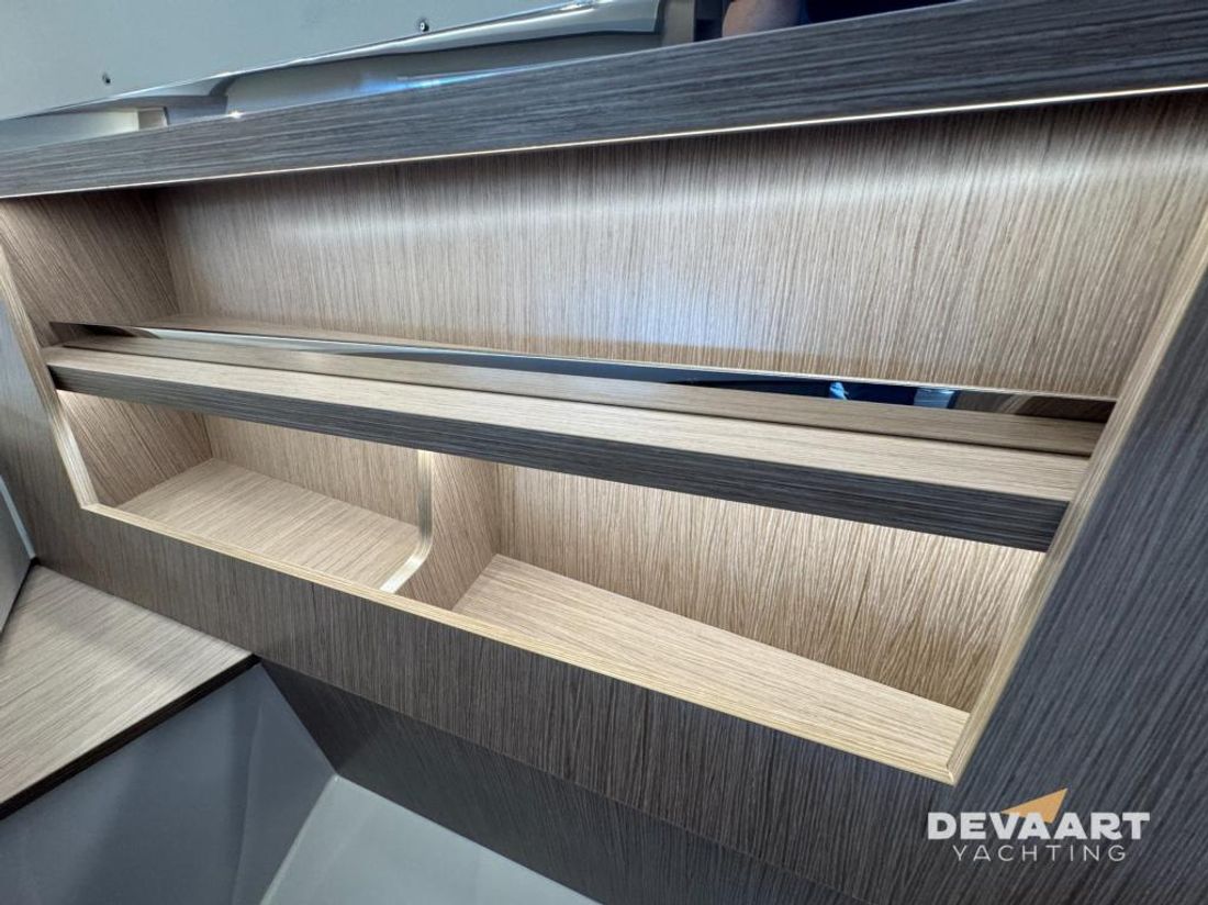 Sealine S335 with 2x Mercury MD3.0L 270HP engines and Layout B2. This Sealine S335 is equipped with an extensive specification including Joystick for Mercury stern drives, extended bathing platform incl synthetic teakdeck, enlarged dashboard, various Raymarine navigation equipment, Cruising package, Comfort package, hot air heating in aft cabin, lobby and head and Indirect light package. For full specification please contact us at +31 320 212341 or visit our website www.devaartyachting.com Part-exchange considered. De Vaart Yachting are dealers of Nimbus Boats, Sealine Yachts, Paragon Yachts and Aquador Boats. In addition, we are specialists in pre-owned Scandinavian motor yachts and internationally active yacht brokers. In our showrooms you will find a large number of new and pre-owned motor yachts for sale. Visit www.devaartyachting.com for our complete boat listing.