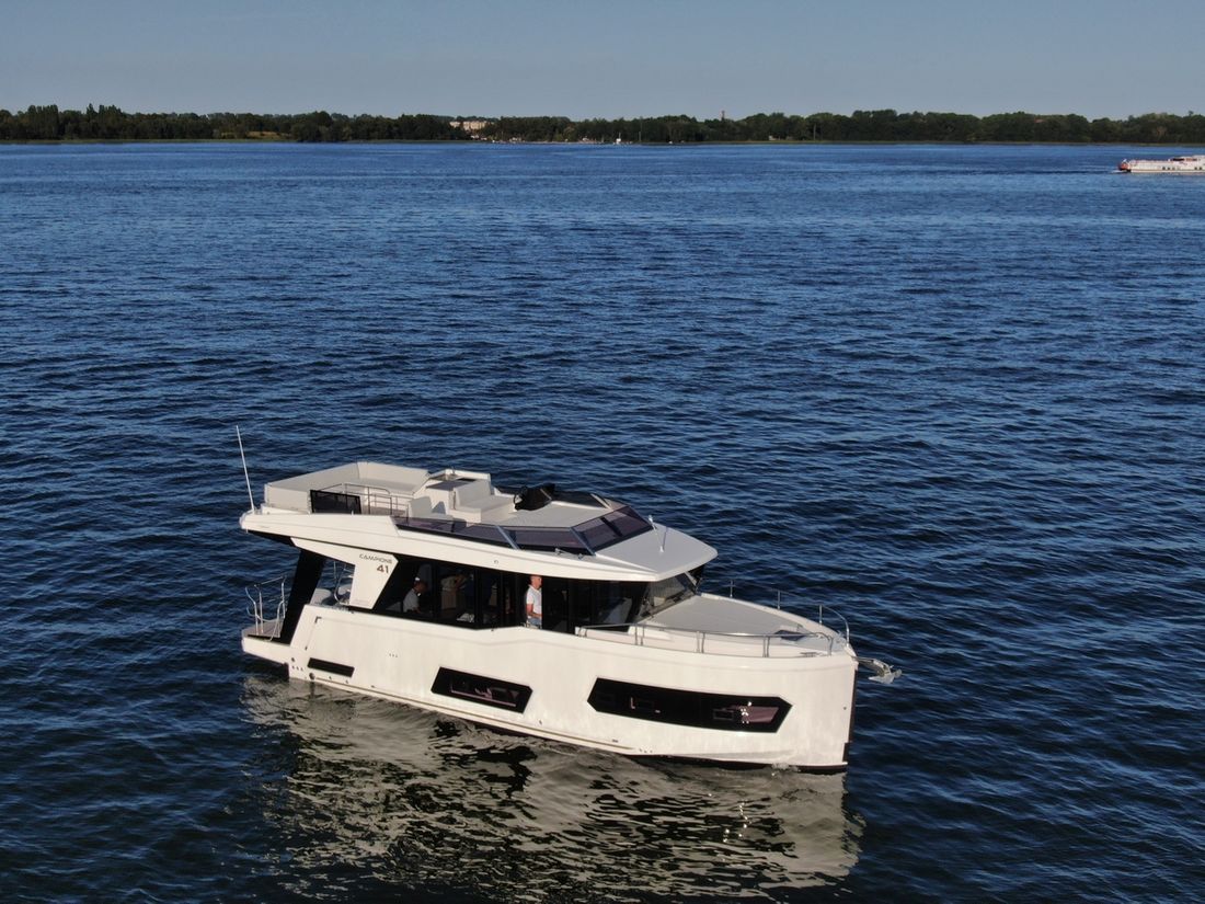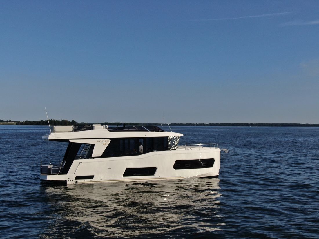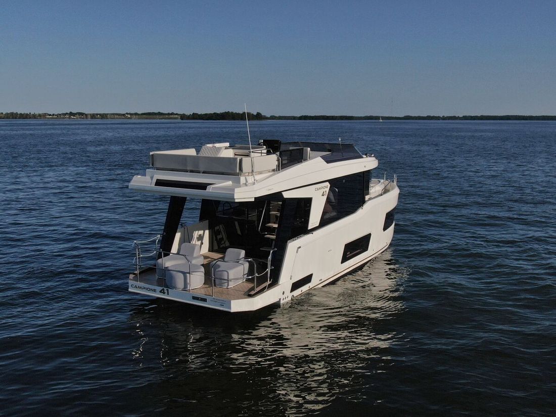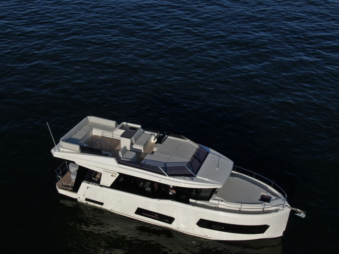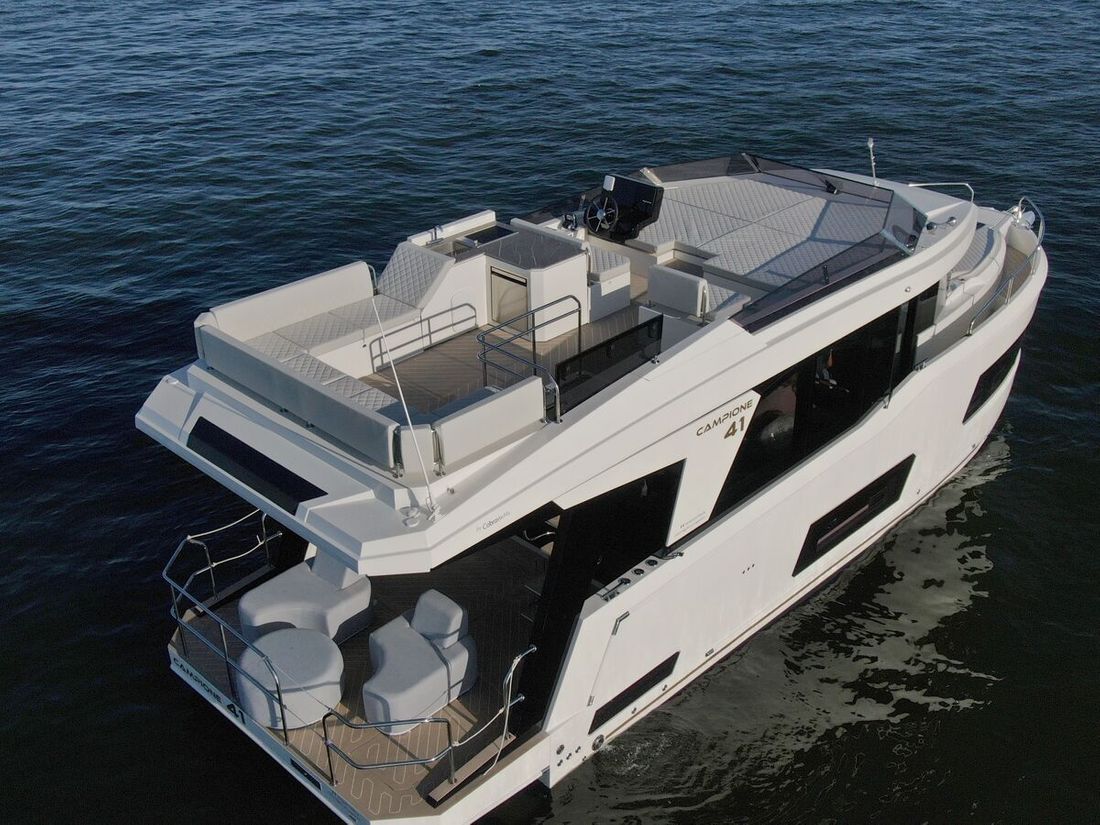 When you step aboard the Campione 41 Fly, you won?t believe that this yacht is only 41 feet long. The bathing platform acts as an extension of the saloon space thanks to modern access doors previously only found on larger motor yachts.