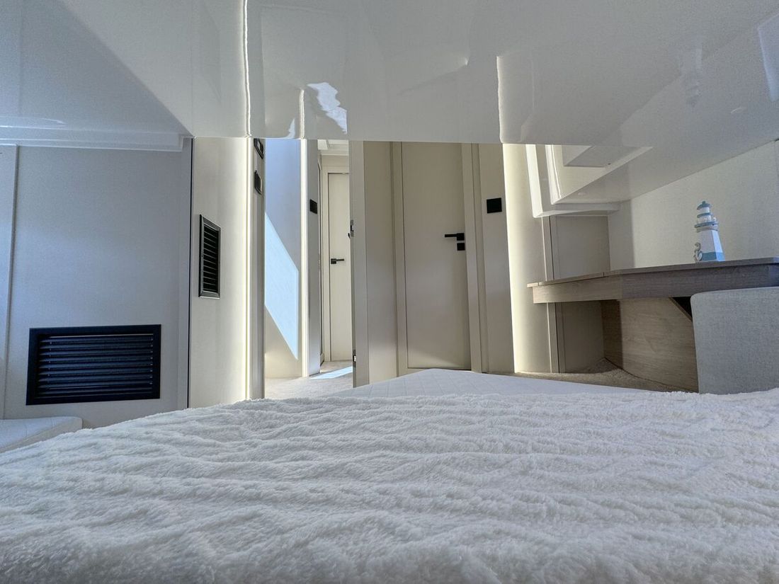 The Campione 41 Fly is an extremely versatile yacht. The Premium two-cabin version is an excellent choice for clients looking for a luxurious and dynamic owner's yacht. The three-cabin version is ideal for a larger family or as a fleet yacht for a charter company.