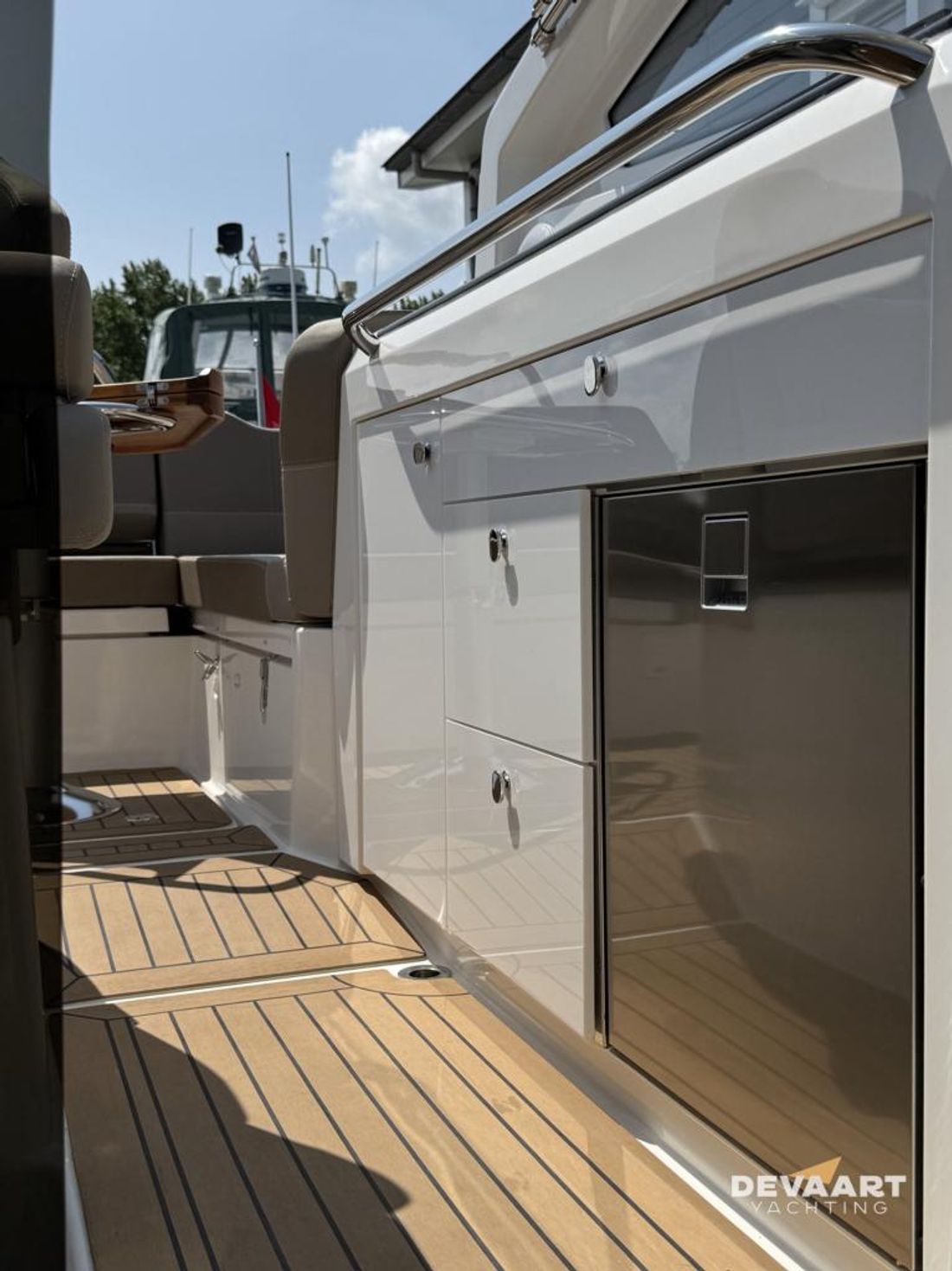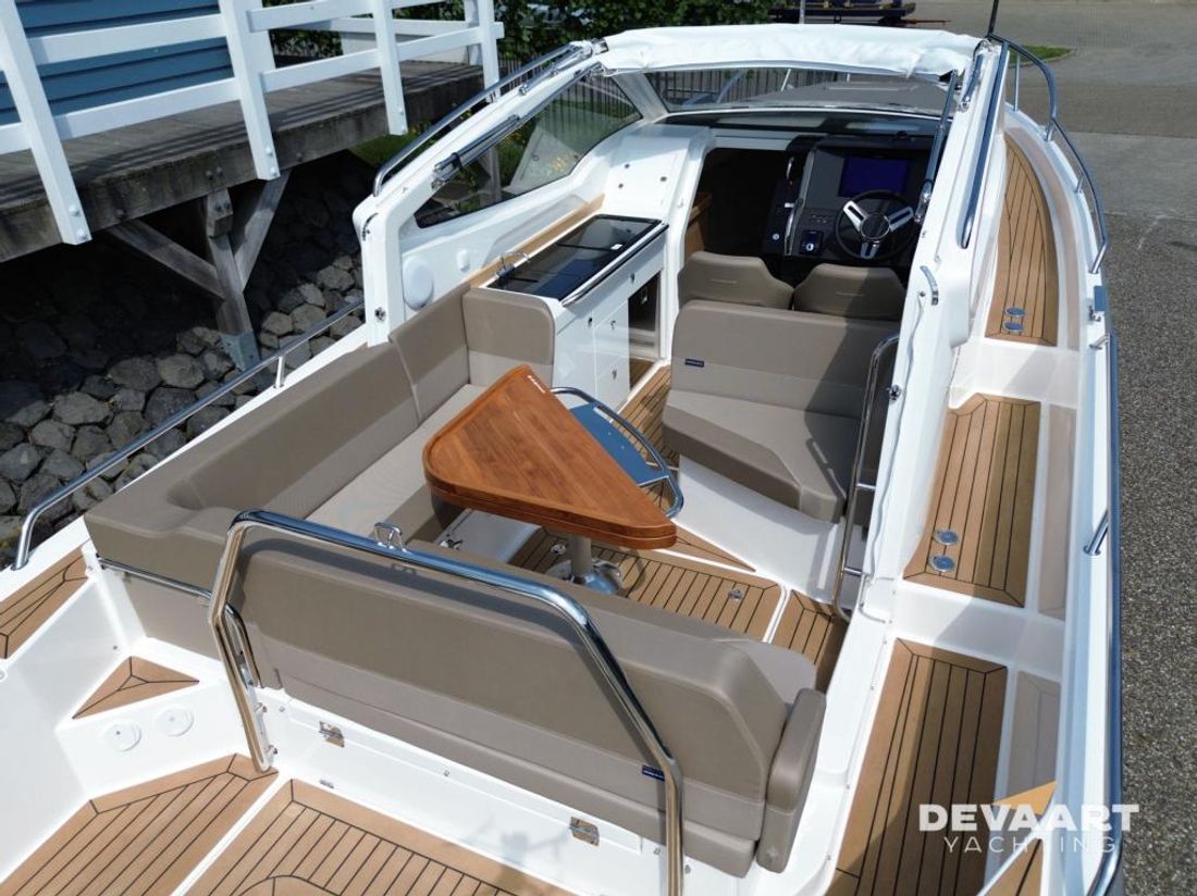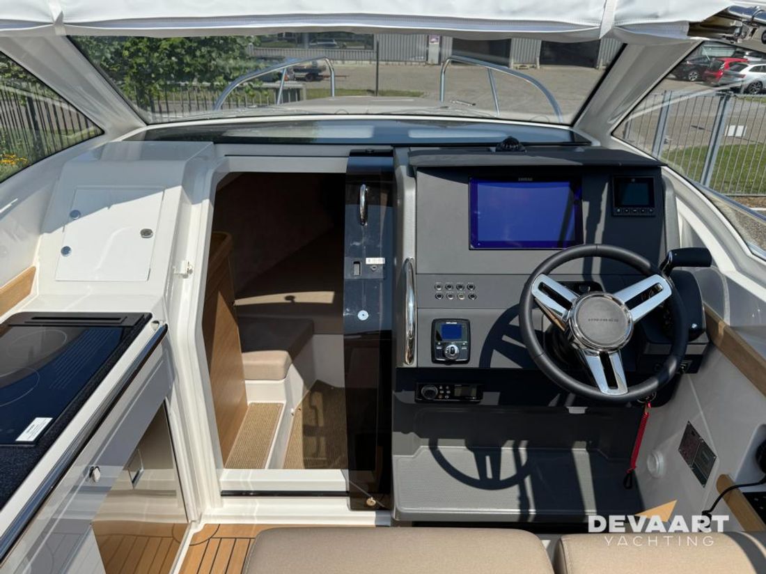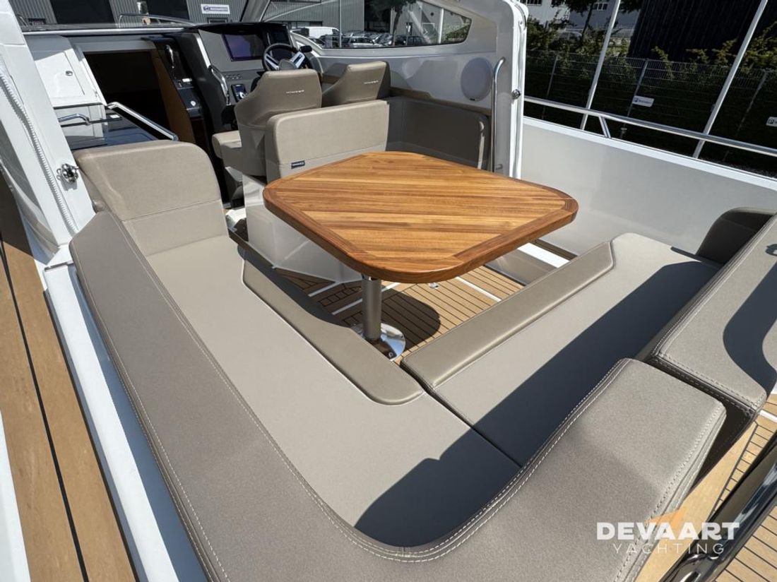 Nimbus W9 with 300 hp Mercury Verado, interior finished in Nordic oak. This Nimbus W9 has extensive equipment including Flexiteek deck complete deck and cockpit, sprayhood, cockpit canopy long version, bow thruster, electric windlass, jalousie sunshade skylight, front cabin mattress topper, sun bed foredeck, water ski hook and various Simrad navigation equipment. Part-exchange considered. Contact us at +31 (0)320 21 23 41 or visit our website www.devaartyachting.com for more information on this motor yacht. De Vaart Yachting are dealers of Nimbus Boats, Sealine Yachts, Paragon Yachts and Aquador Boats. In addition, we are specialists in pre-owned Scandinavian motor yachts and internationally active yacht brokers. In our showrooms you will find a large number of new and pre-owned motor yachts for sale. Visit www.devaartyachting.com for our complete boat listing.