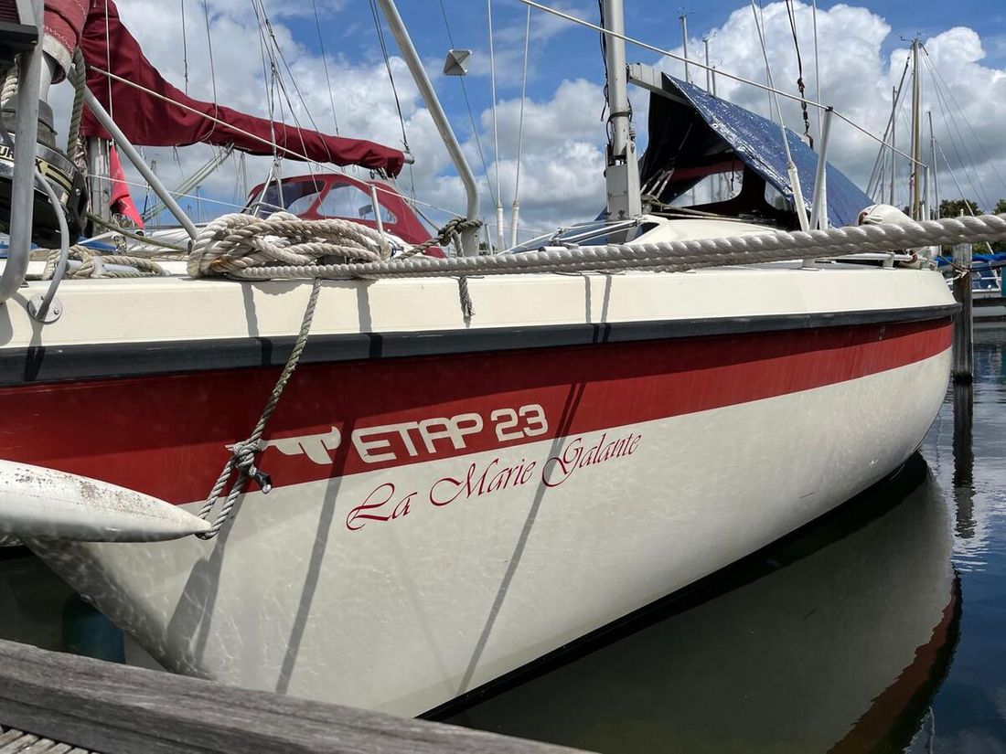 Category Category Sailing Yacht Brand Etap Model 23 Ship's name La Marie Galante Berth Type Elsewhere Country Netherlands Latitude 51.55297550 Longitude 3.80969970 General Status Sold New or used Used Boat type Sailboat Year of construction 1986 Hull material GRP (polyester) Account manager Schepenkring Delta Marina Short description Nice starter boat, very easy to sail and suitable for shallow waters Motorization summary Yamaha F8CMHS Broker yacht URL https://deltamarina.yachtshift.nl/36/etap-23-la-marie-galante Dimensions Length 736 centimetres Width 249 centimetres Draught 70 centimetres Variable draught -