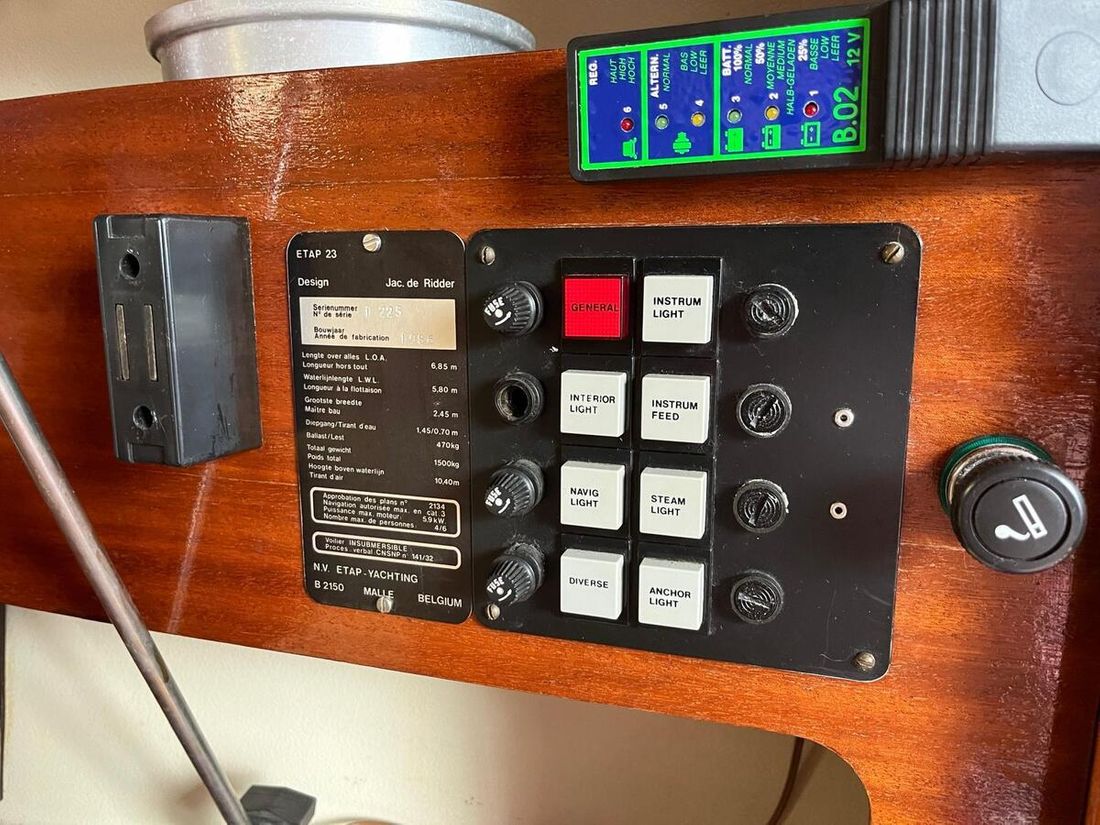 Delivered new Designer Etap Yachting Malle CE max weight 1500 kg Hull deck superstructure Hull shape roundbilge Deck construction grp (polyester) Dimensions and weights Maximum draught 145 cm Minimum draught 70 cm Displacement 1500 kg Ballast 470 kg Steering and Drift Limitation Steering system helm Rudder single Keel/Lee board lifting keel -