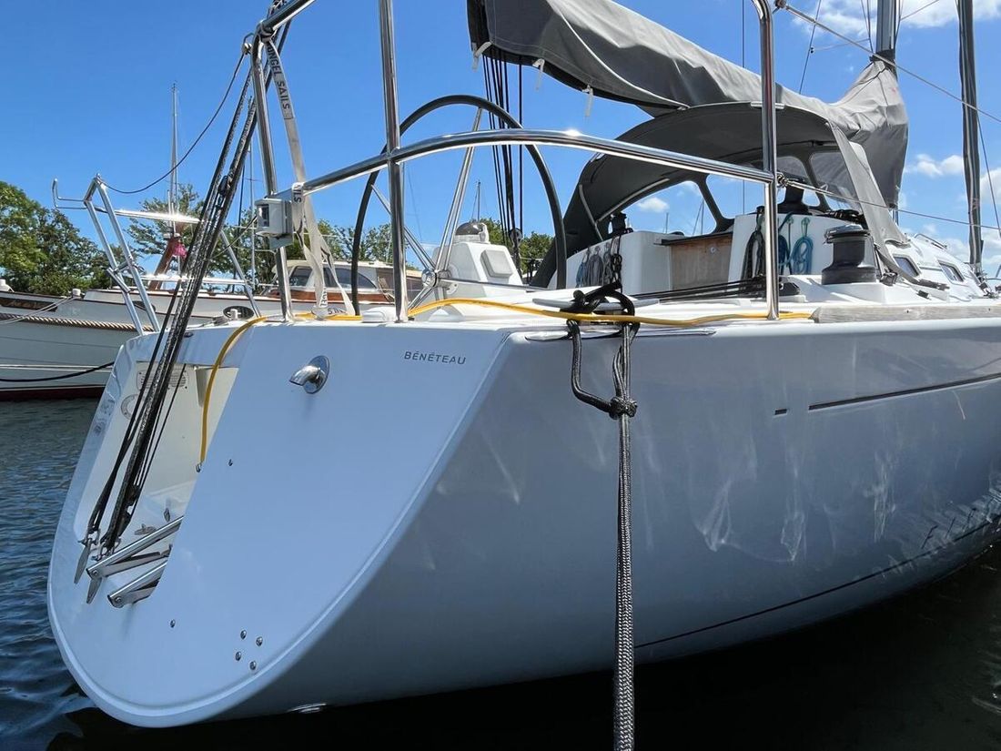 Delivered new Designer Bruce Farr Shipyard Beneteau Hull number 607 CE-category A CE max weight 1840 kg Passenger capacity 8 Hull deck superstructure Hull shape roundbilge Hull colour white Deck colour white Deck construction grp (polyester) Cockpit aft cockpit Steering and Drift Limitation Steering system wheel Position steering system outside control Rudder single Keel/Lee board fixed keel -