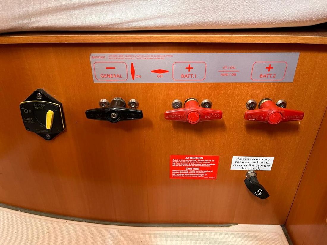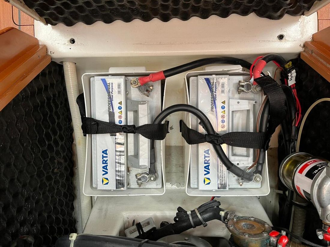 Engines Number of identical engines 1 Starting type electric Main engine Type inboard Brand Yanmar Model 3YM 30SD Serial number EO 5446 Year 2006 Number of cylinders 3 Power 30 hp Engine hours 600 Fuel diesel Fuel consumption 3 litre/hour Drive Transmission saildrive Propulsion Folding propellor Cooling system direct Tank Fuel tanks Fuel tank material polyethyleen Measuring instruments Tachometer Oil pressure gauge Temperature gauge Electricity Battery Number 3 Battery charger Comments Battery charger Mastervolt Shore power Shore power cable 12V 220V -