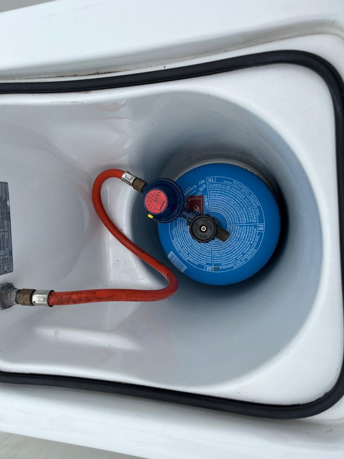 Spaces Separate Dining area Engine room Cabins 3 Saloon Decoration Type interior Modern, wood look Color upholstery white Cushions Water Water tank & material Capacity 300 litre Water tank material plastic Water system pressure + manual Hot water Deck Shower Plumbing Number of showers 1 Comments Number of showers outside Toilets 1 Manual Entertainment Radio/CD player Kitchen Cooker & fuel Comments Cooker & fuel Eno Number 2 Cooking fuel gas Oven Fridge & power source Capacity 90 litre Power source electric Freezer Comments Freezer freezer Climate control hot air Comments Heating Webasto -