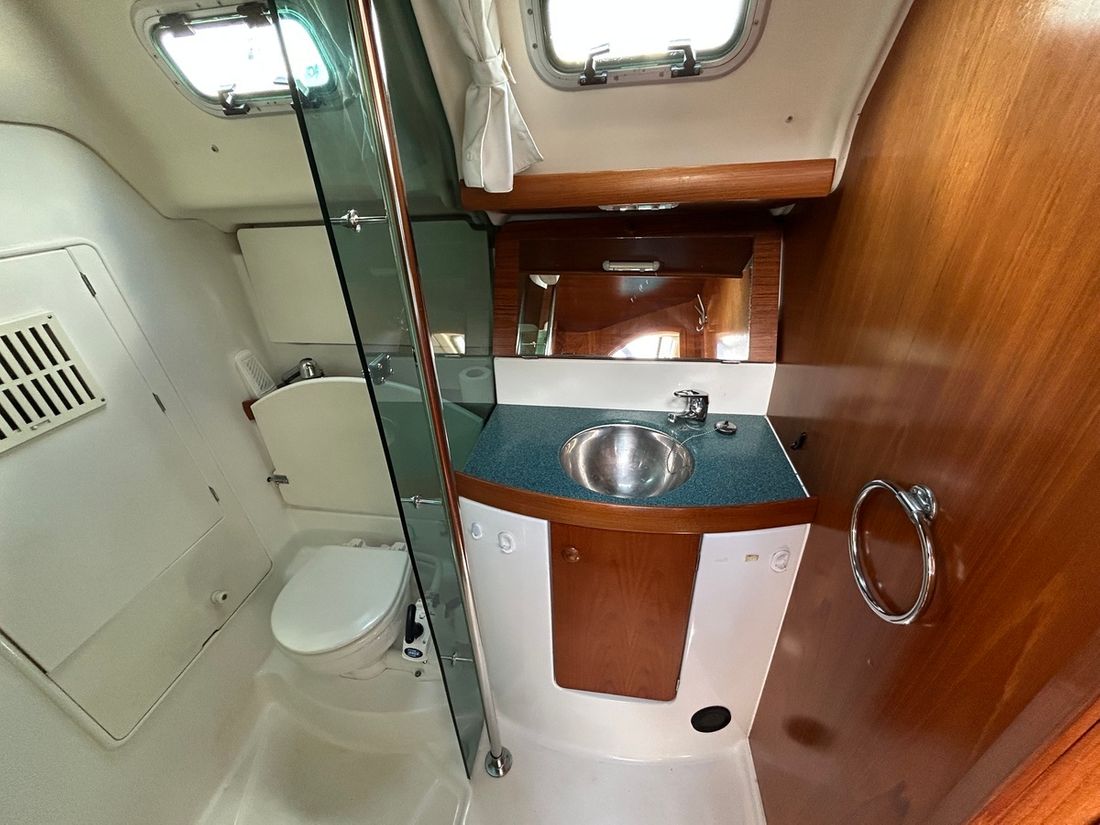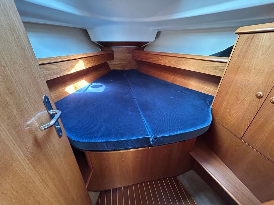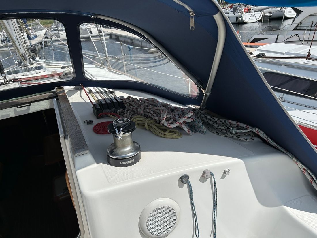General Sailplan type masthead Number of masts 1 Spars material aluminium Main and stern sails Main sail Sails manufacturer Sailonet 2018 29 m2 Headsails Genoa Brand Genoa Sailonet 2015 38 m2 Jib Furling foresail Brand Furling foresail Furlex 2019 Storm jib Spinnaker Winches Number 4 -