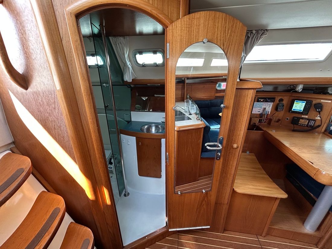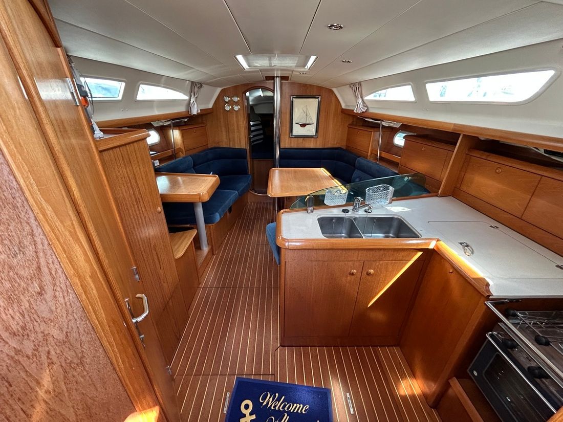 Delivered new Designer Jacques Faroux & Jeannean Design Shipyard Jeanneau CE-category A Hull deck superstructure Hull shape roundbilge Hull colour white Deck colour white Deck construction grp (polyester) Cockpit aft cockpit Dimensions and weights Displacement 6250 centimetres Ballast 1840 centimetres Steering and Drift Limitation Steering system wheel Position steering system outside control Rudder single Keel/Lee board fixed keel -
