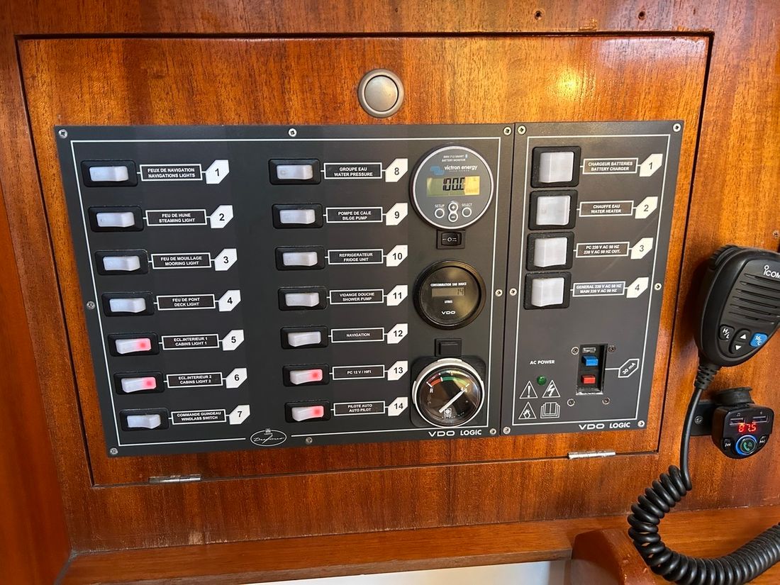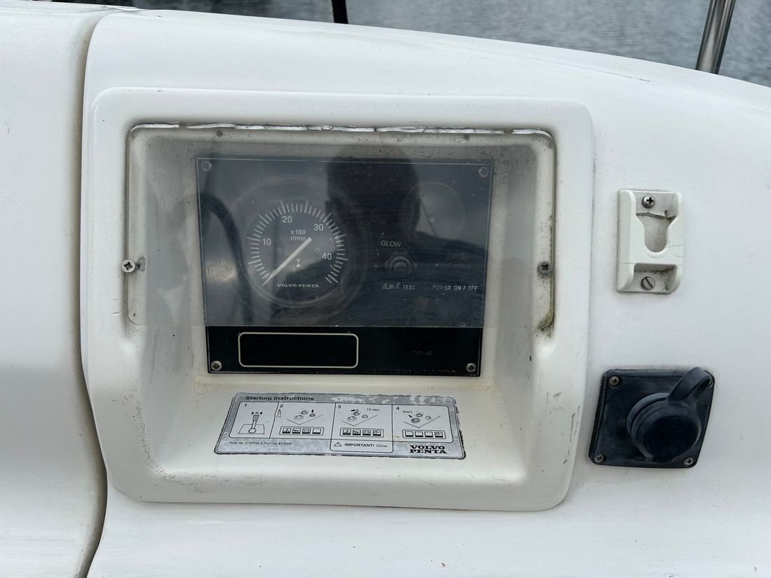 Engines Number of identical engines 1 Starting type electric Main engine Type inboard Brand Volvo Penta Model MD2030 Serial number 5102111929 Year 1999 Number of cylinders 3 Power 28 hp Hours counter Comments Engine hours hour counter not working Fuel diesel Drive Transmission saildrive Propulsion propellor Comments Propulsion folding propeller Gori 2 blades Cooling system indirect Tank Fuel tanks Number 1 Total fuel tank(s) capacity 110 litre Performance Max speed 13 km/h Measuring instruments Fuel tank gauge Tachometer Oil pressure gauge Temperature gauge Electricity Battery Comments Battery Starter battery 2022 74 Ah and Service battery 2 x 100 Ah 2020 Battery charger Comments Battery charger Victron Blue smart 12/30/2020 Alternator Battery monitor Shore power Comments Shore power cable 20 meters + 10 meters extension cable Shore power cable 12V 220V -