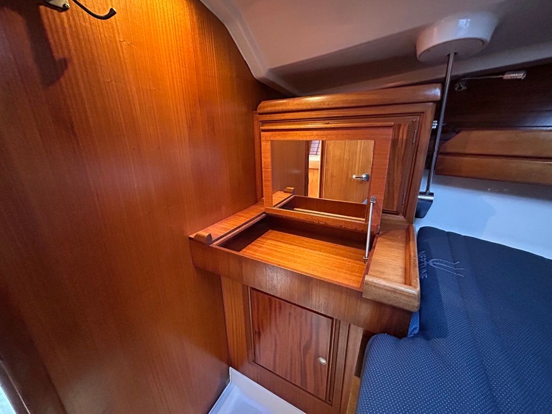 Spaces Saloon Separate Dining area Engine room Cabins 3 Decoration Type interior Classic, warm Color upholstery blue Mattresses Curtains Water Water tank & material Comments Water tank & material 2 tanks Capacity 280 kg Water tank material plastic Water tank gauge Water system pressure Comments Hot water boiler was removed in 2016 but the connections are still available Deck Shower Plumbing Comments Toilets new 2025 Manual Entertainment Radio/CD player Comments Radio/CD player met blue tooth Kitchen Cooker & fuel Comments Cooker & fuel ONE Number 2 Cooking fuel gas Oven Amount 1 Fridge & power source Comments Fridge & power source cooling system checked again in 2025 Capacity 50 litre Power source electric Freezer Comments Freezer freezer Climate control hot air Comments Heating Webasto. The hoses were renewed in 2020 -