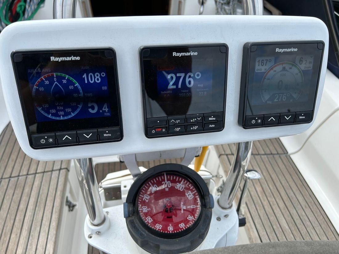 Basic tools Compass Brand kompas Plastimo Olympic 135 uit 2021 Log/speed Brand log/speed Raymarine I70s 2022 Depth gauge Brand depth gauge Raymarine I70s 2022 Wind gauge Brand wind gauge Raymarine I70s 2022 Navigation lights Comments Navigation lights LED Modern electronics Autopilot Brand autopilot Raymarine Evolution P70s 2022 GPS Communication VHF Brand VHF Icom 330 GE -