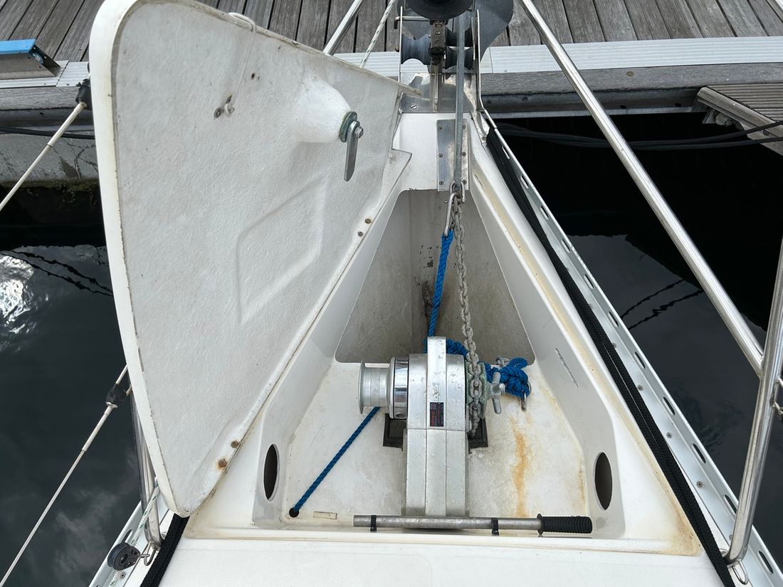 Anchor Anchors & material Number 1 Type Delta 16 KG Anchors material galvanized Anchor connection chain Anchor windlass electric Comments Anchor windlass 25 meter Deck equipment Sprayhood Cockpit tent Sea rails Comments Sea rails new 2022 Swimming platform Swimming ladder Push- and pulpit(s) Miscellaneous Fenders, lines Cockpit table -