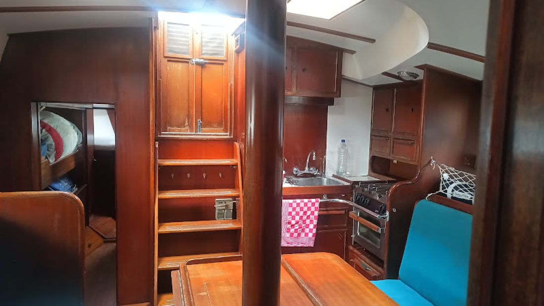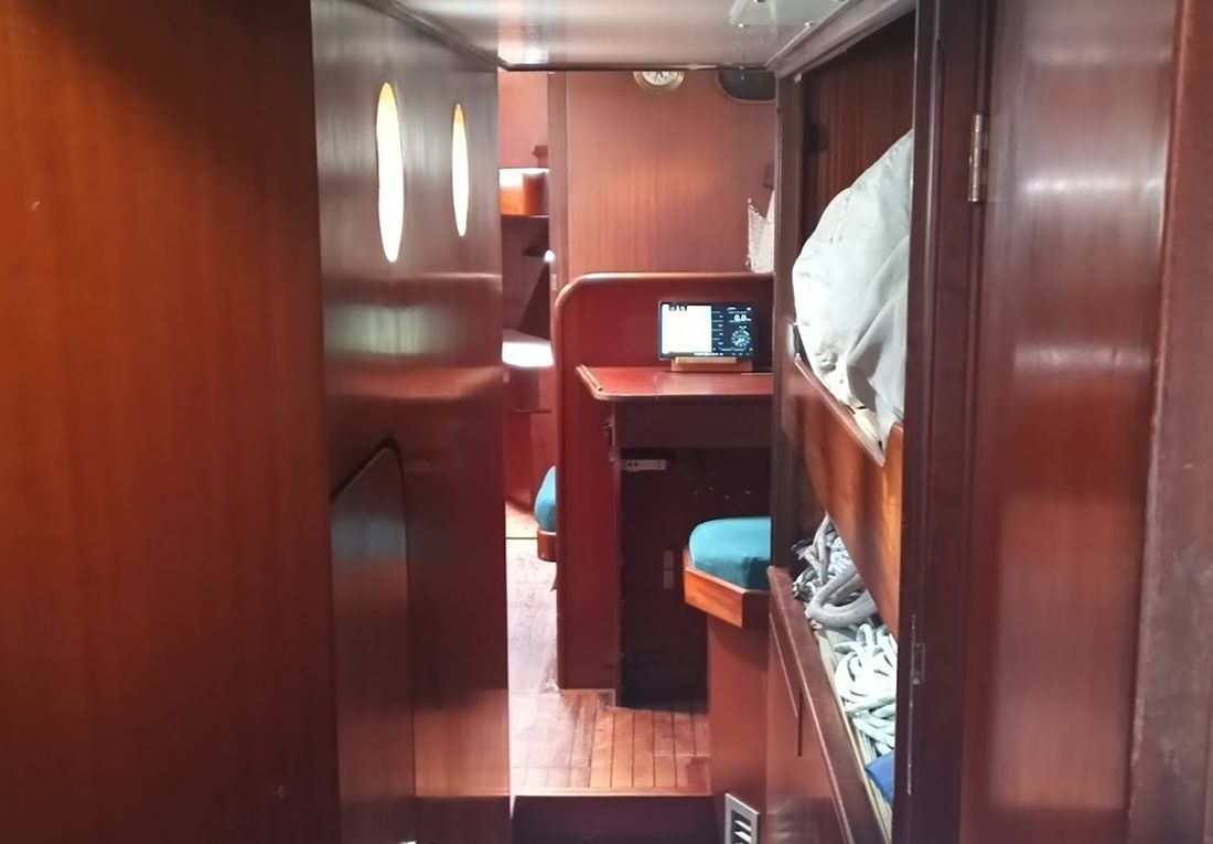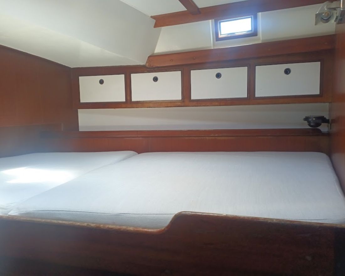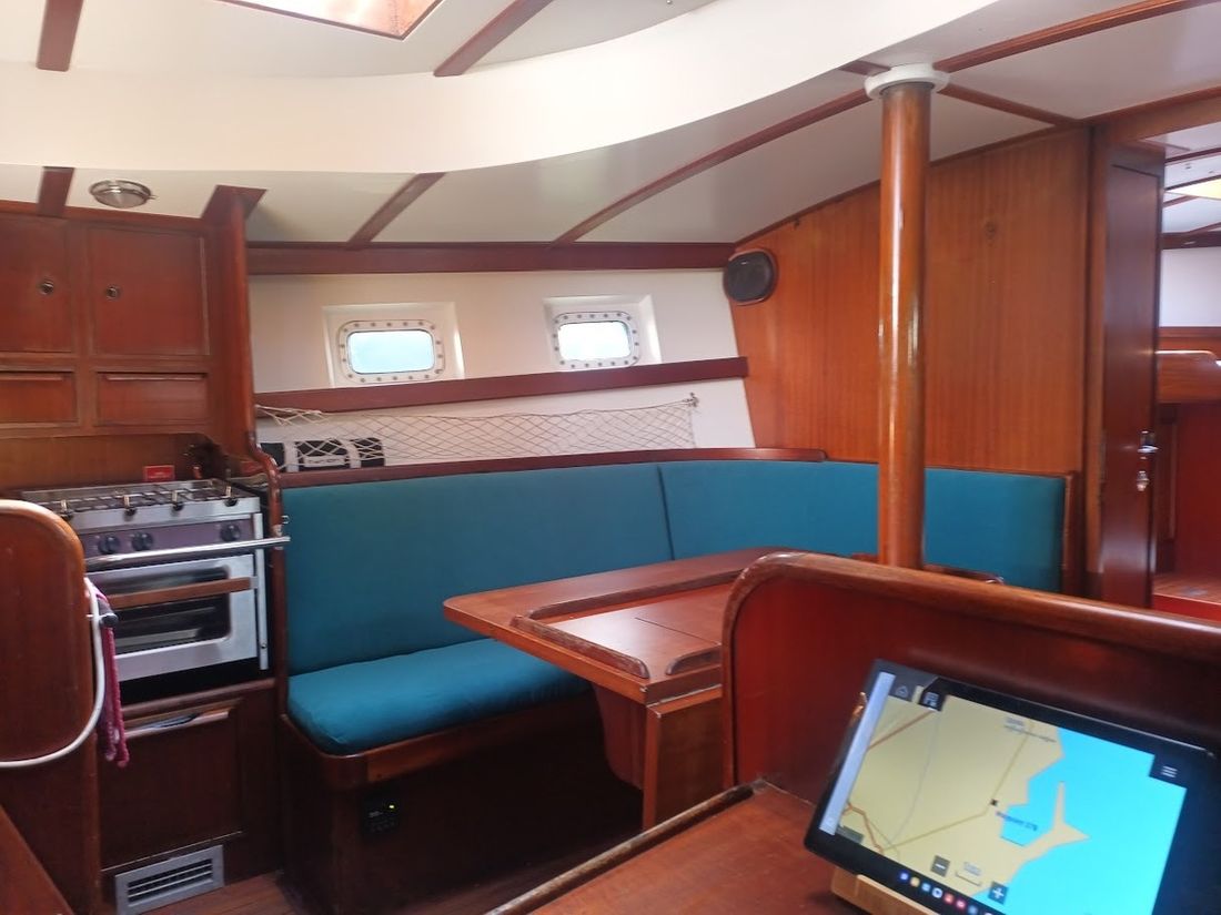 The Faston is a stable ship and a fast sailer. It has a draft of 220, is heavily rigged, and has a safe and spacious centre cockpit. The ship is ketch-rigged, which makes the sails easy to handle. The ship has a spacious interior with a cosy saloon, kitchen and a navigation corner, six berths, two wet cells and a large engine. The saloon and cabins have real standing height, which makes the ship suitable for long stays at sea or in port.
