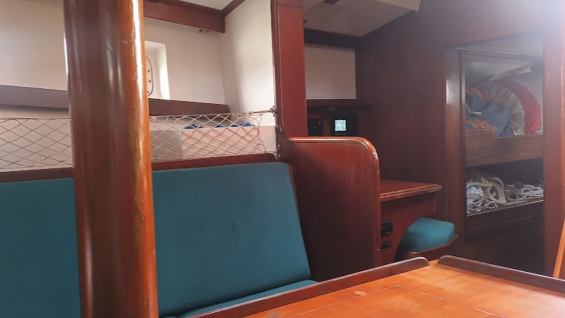 A ship with history. From the logbook we know that the ship was used as a charter in the Mediterranean and along the English south coast. In the eighties she sailed along the Canary Islands and the Azores to the Caribbean Islands and back. Part of that journey was done solo sailing.