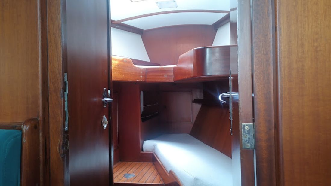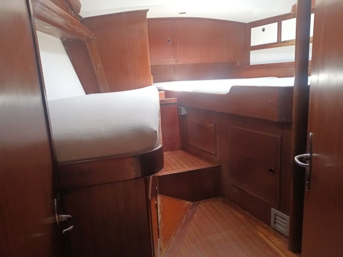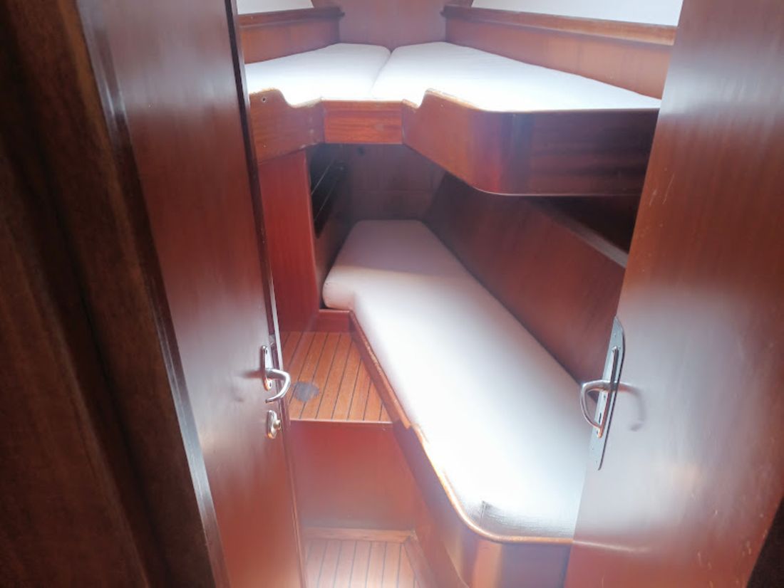 Spaces Saloon Engine room Cabins 2 Comments Berths 6/2 Saloon Layout and spaces inside spacious aft cabin, toilet, passage next to engine room, chart table, galley, spacious saloon, toilet, forepeak. Decoration Type interior Classic, warm Color upholstery green Mattresses Cushions Curtains Water Water tank & material Capacity 1200 litre Water tank material steel Water system pressure Comments Hot water prepared Plumbing Toilets 2 Comments Toilets Victoria Blakes Manual Kitchen Cooker & fuel Comments Cooker & fuel Force 10 Number 4 Cooking fuel gas Oven Fridge & power source Comments Fridge & power source compressor Power source electric Climate control Comments Heating prepared -