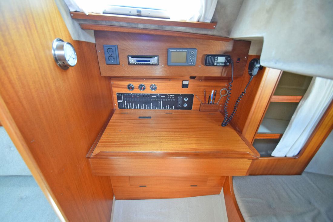 1x starter battery, 2x light battery, 12 Volt system, shore power connection, battery charger, Furuno GP-32 GPS, Clipper GPS repeater, Raymarine, bulkhead compass, Raymarine ST40 Speed, Raymarine i40 Depth, Icom marine radio, outdoor speaker, Pioneer radio (not working), Autohelm ST2000 autopilot, navigation lights.
