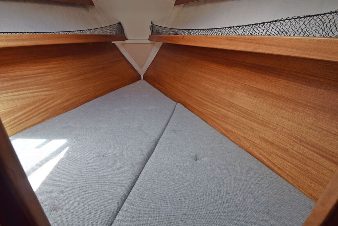 Inside you will find a warm and atmospheric interior, classically fitted in beautiful teak. The space is surprisingly generous, with a well-thought-out layout that combines comfort and coziness. Whether you are away for a weekend or on a longer trip, you will feel right at home on board.