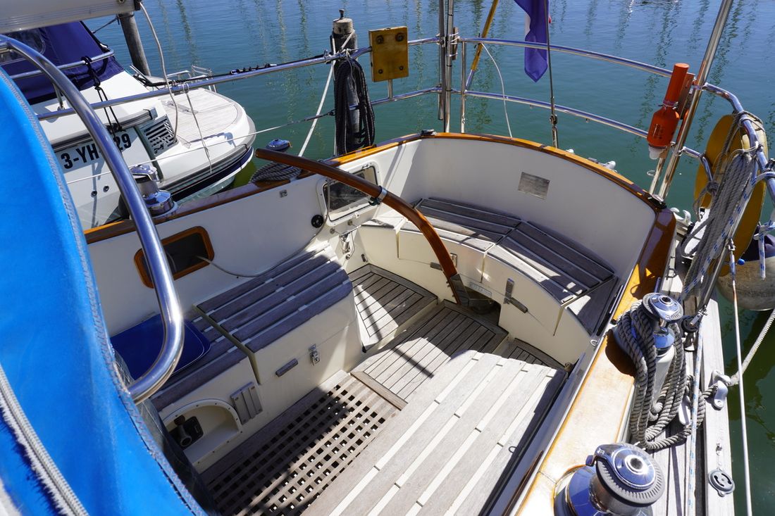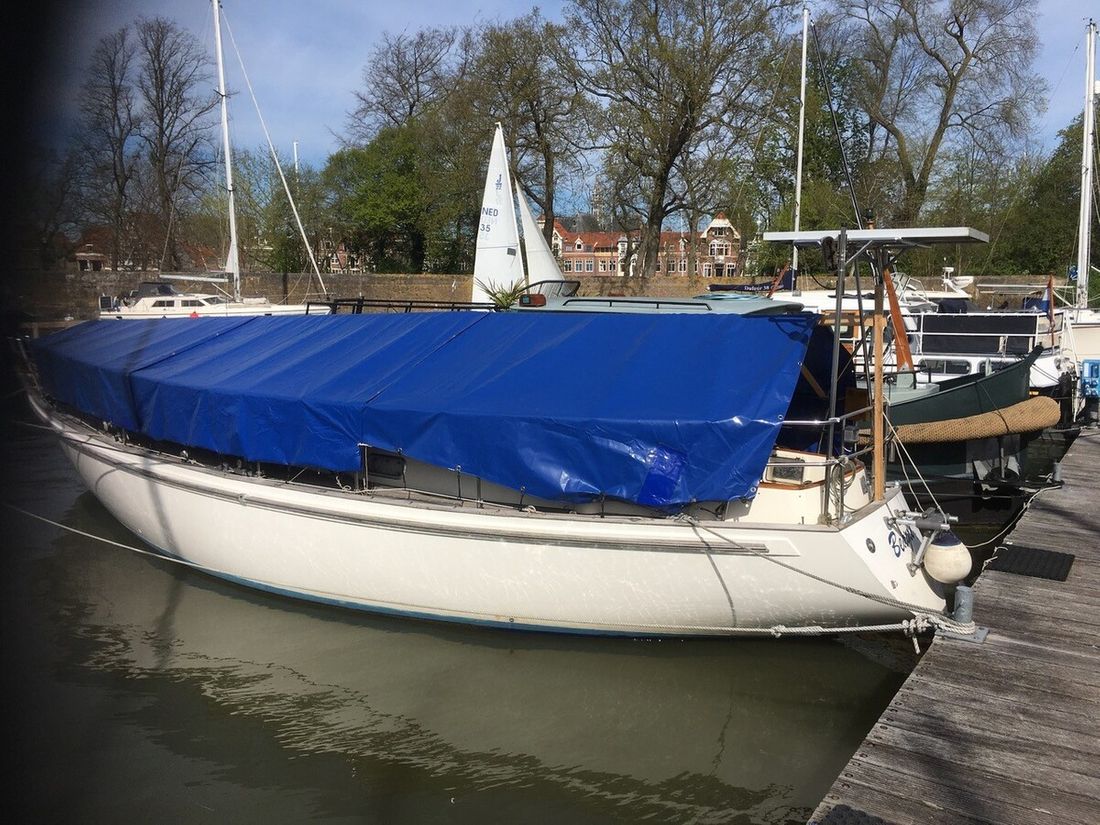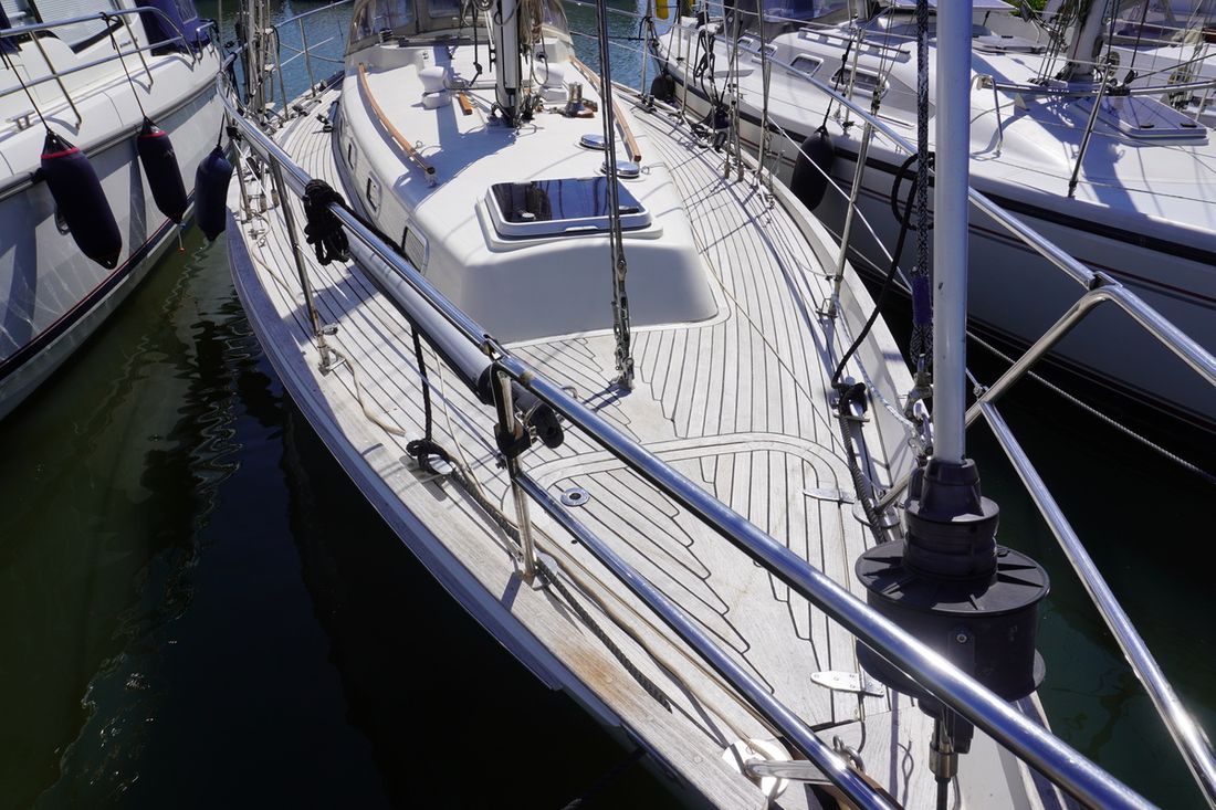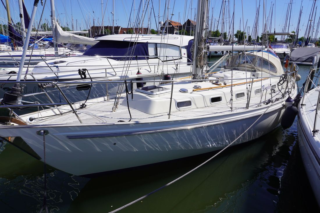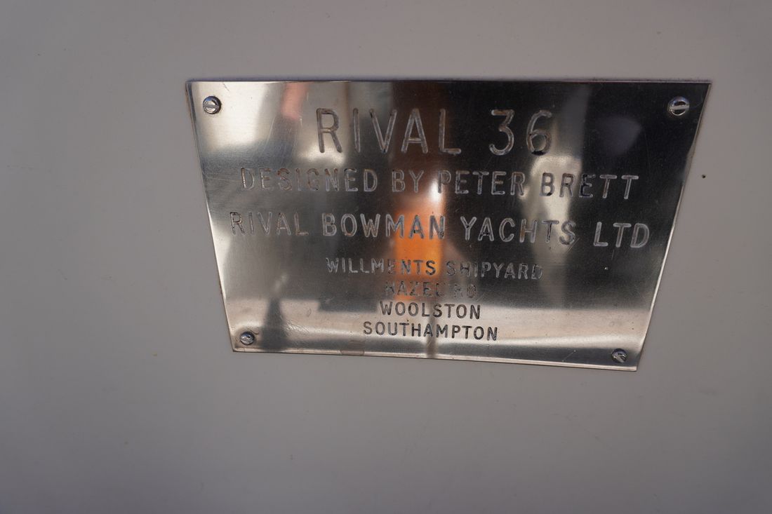 Delivered new Designer Peter Brett Shipyard Rival Bowman. Southampton Hull number 68 Hull deck superstructure Hull shape semi s-shaped Hull colour white Deck colour white Deck construction grp (polyester) Cockpit aft cockpit Superstructure teakdek, grp gelcoat off white non-slip finish Windows Lewmar Dimensions and weights Waterline length 850 cm Displacement 7010 kg Ballast 2531 kg Steering and Drift Limitation Steering system helm Comments Steering system steering position available Rudder single Comments Rudder rudder on skeg Keel/Lee board fixed keel Comments Keel/Lee board Scheel keel, semi S frame -