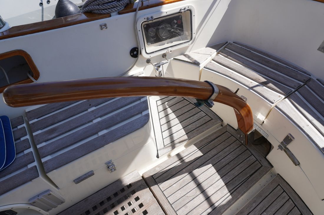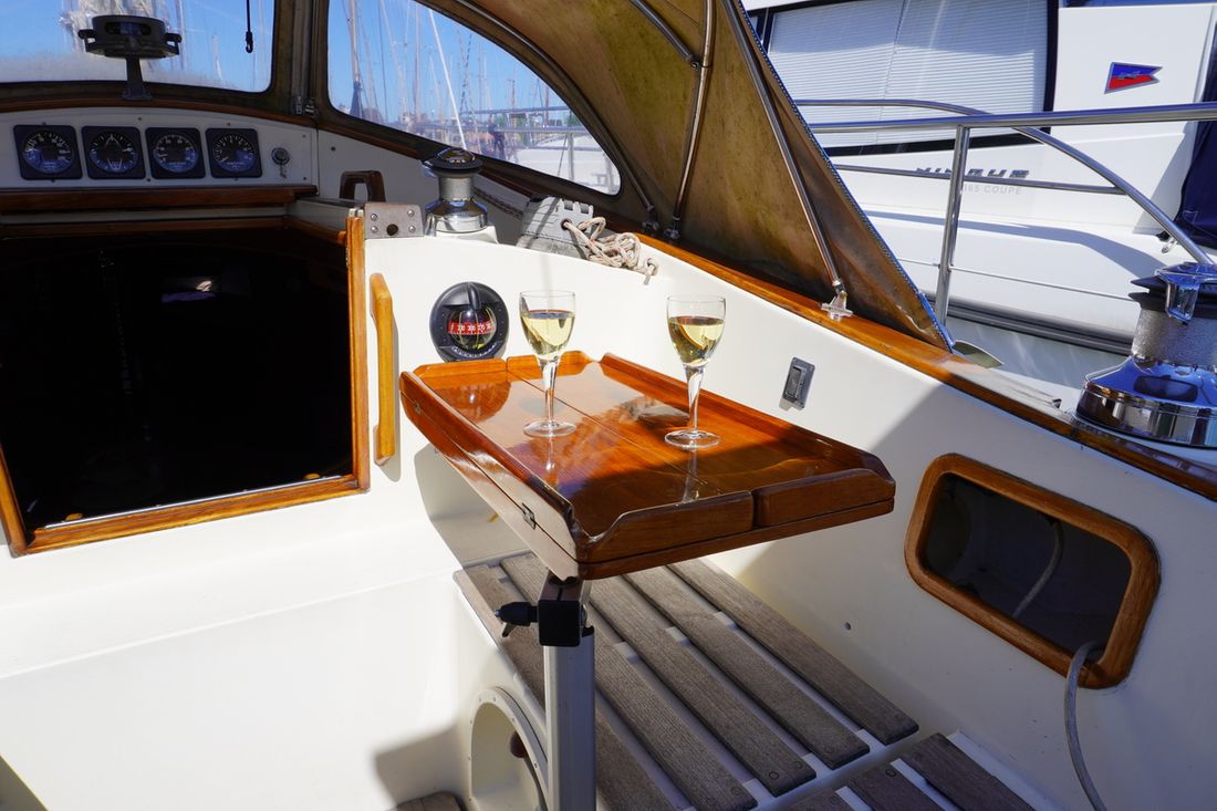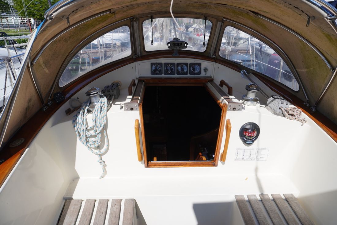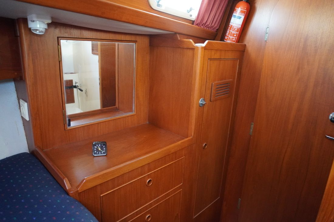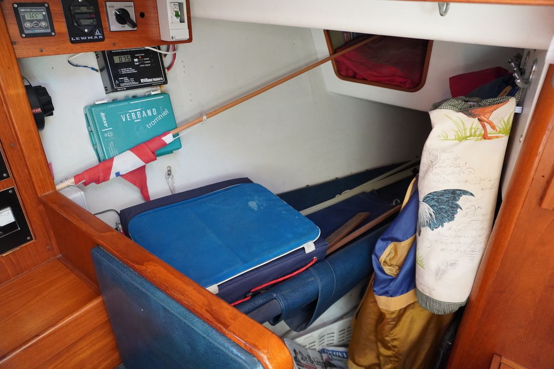 Spaces Saloon Separate Dining area Engine room Cabins 1 Comments Cabins extra a shed with 1 sleeping place Saloon Decoration Type interior Classic, warm Comments Type interior teak Color upholstery blue Mattresses Cushions Curtains Water Water tank & material Capacity 200 litre Water tank material stainless steel Water tank gauge Water maker Water system pressure + manual Hot water Comments Hot water boiler Seawater pump Deck wash pump Plumbing Number of showers 1 Toilets 1 Comments Toilets Lavac Vacuum Entertainment Radio/CD player Comments Radio/CD player outdoor speakers Kitchen Cooker & fuel Comments Cooker & fuel Taylor Number 2 Cooking fuel gas Oven Fridge & power source Comments Fridge & power source water-cooled ASU system Isotherm Power source electric Climate control Heating 1 stove Comments Heating Dickinson dieselkachel -