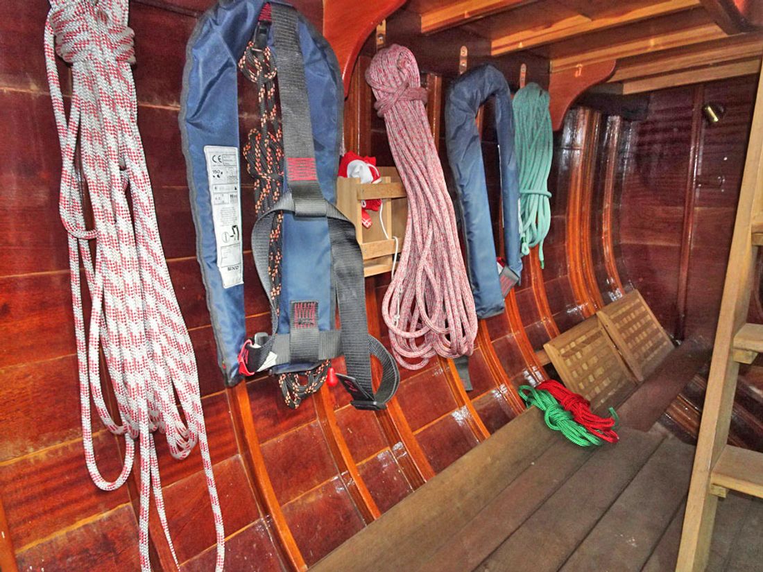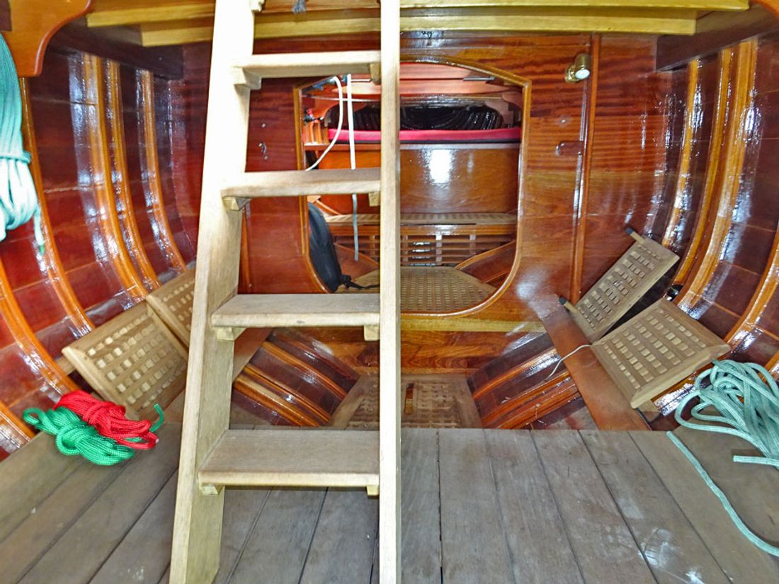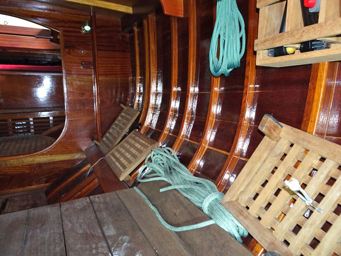 - Hull construction:16 mm mahonie, spanten van:, teak, epoxy