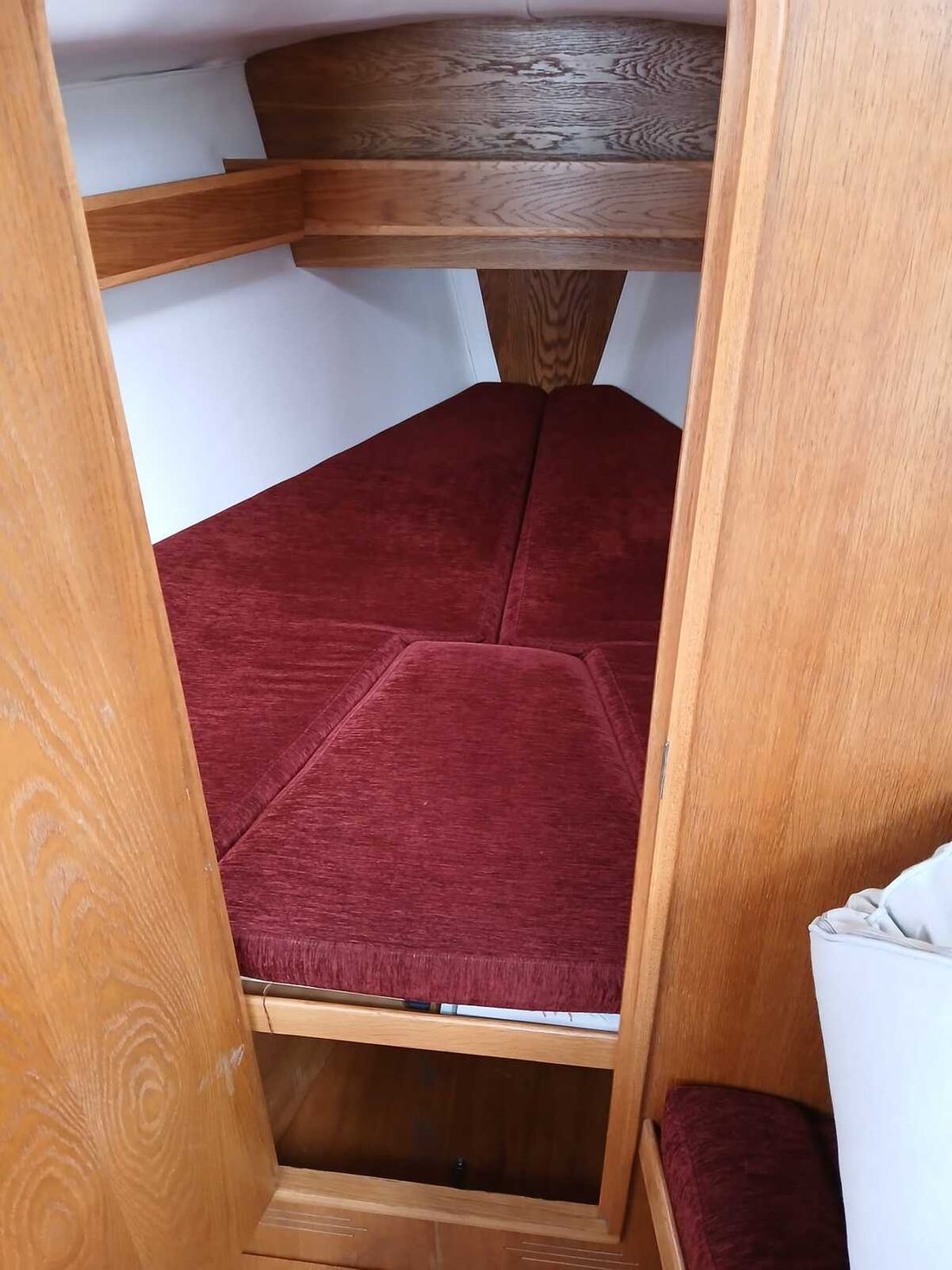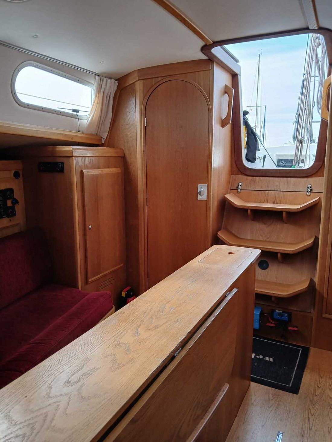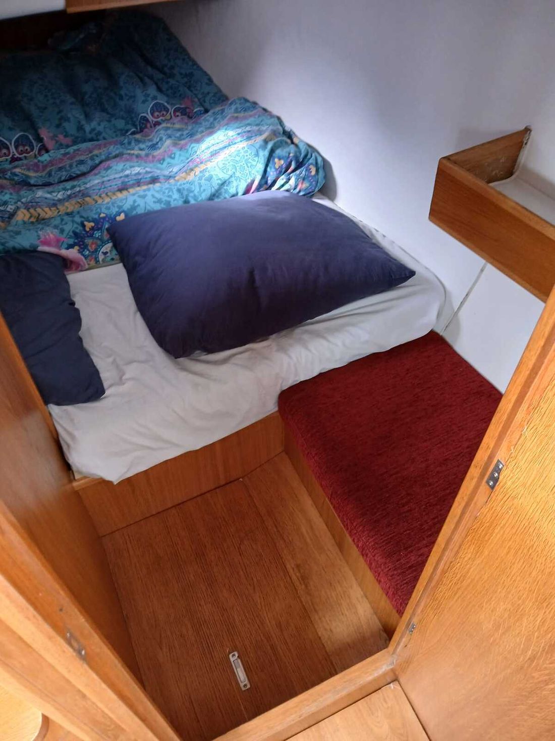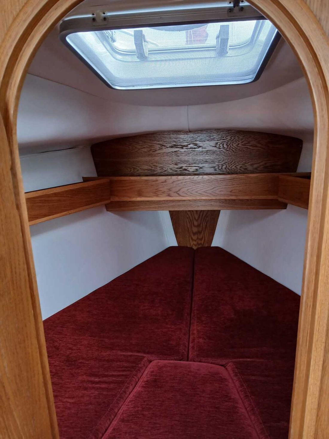 In addition, there is ample storage space for cooking utensils and supplies, making cooking while sailing easy. A hot air stove provides extra comfort, especially during cooler days on the water. The forward cabin is equipped with a V-shaped bed, which offers sufficient space and comfort. In addition, there is practical storage space for clothing and personal belongings. The aft cabin has a double bed. Here too, there is sufficient extra storage space, so that the cabins can remain neat and tidy. The bathroom is efficiently laid out with a Jabsco pump toilet and a sink, which offers everything you need for comfort on board.