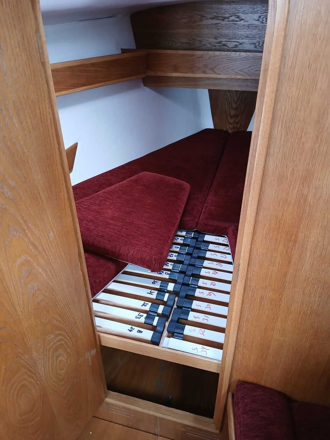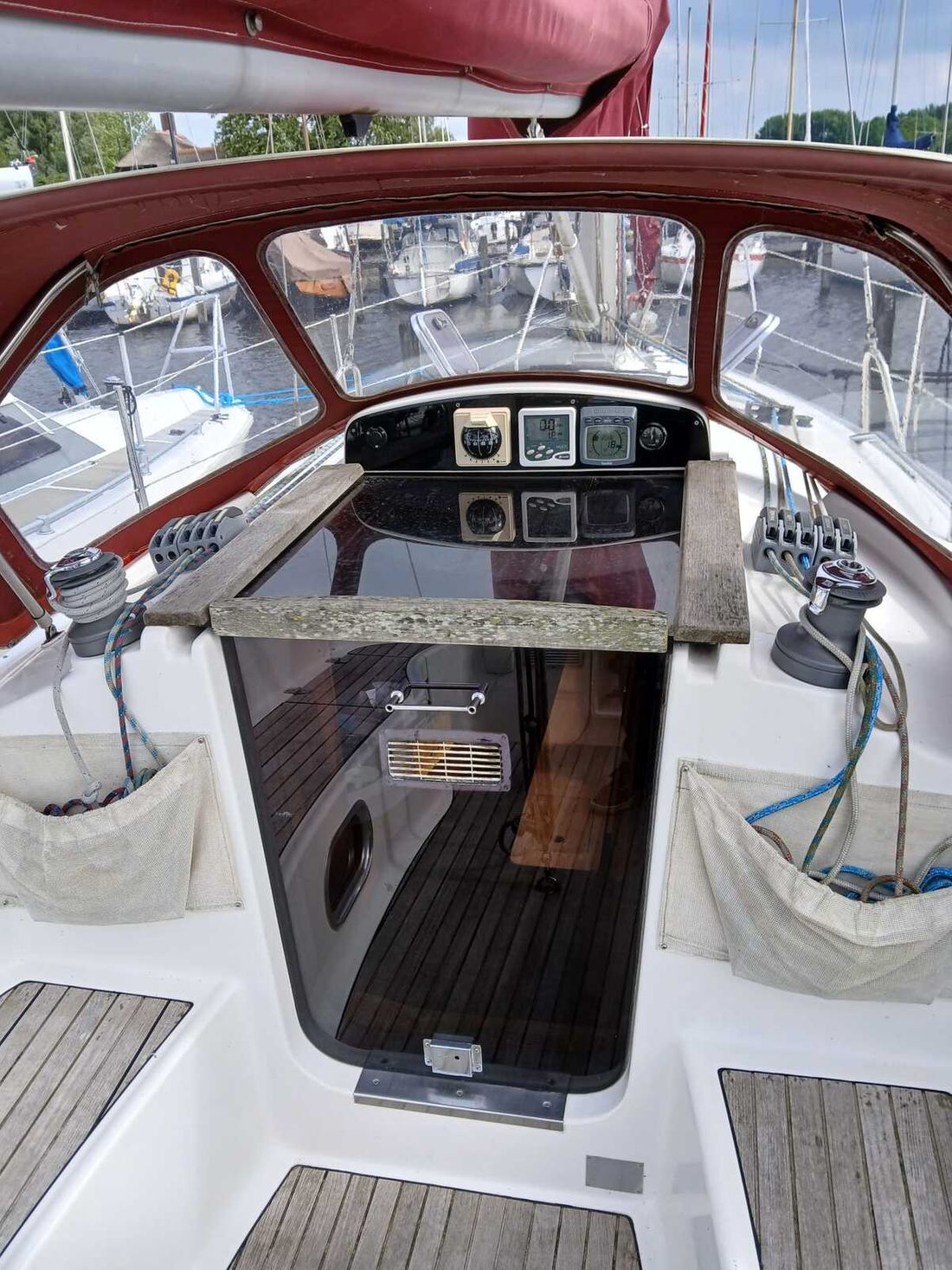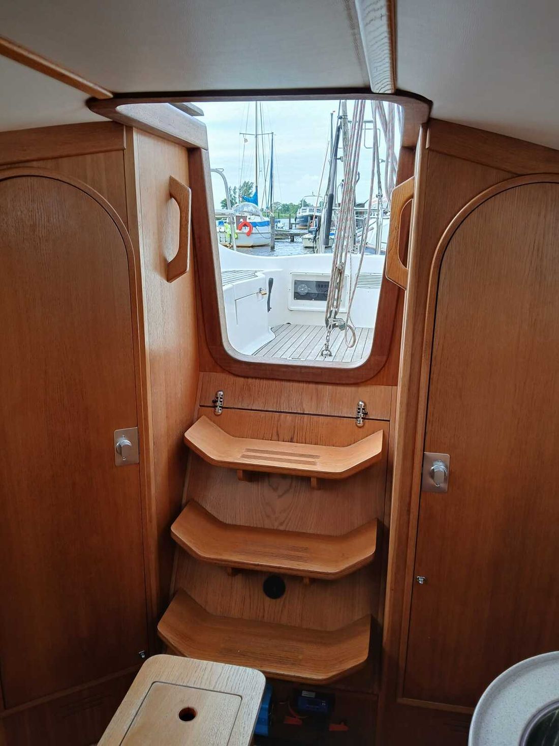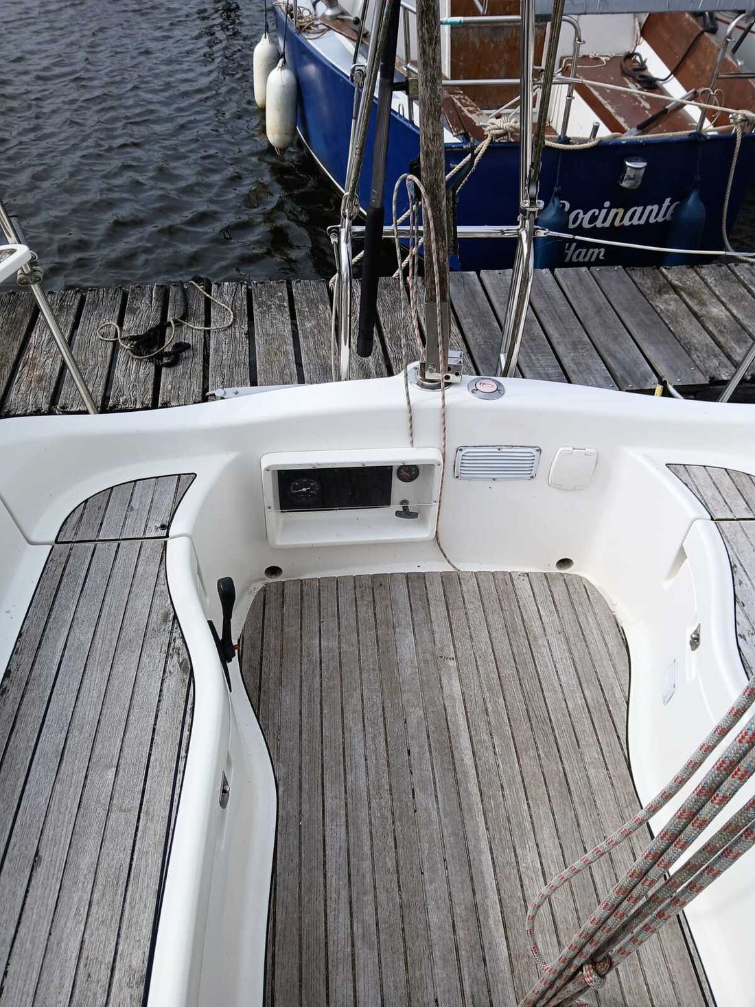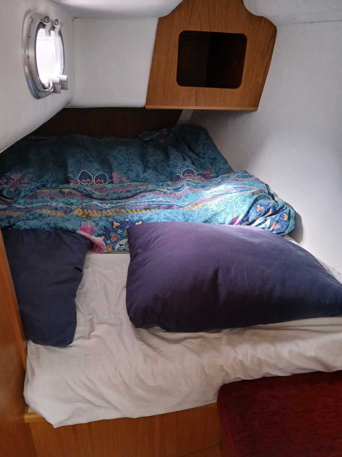 In addition, there is ample storage space for cooking utensils and supplies, making cooking while sailing easy. A hot air stove provides extra comfort, especially during cooler days on the water. The forward cabin is equipped with a V-shaped bed, which offers sufficient space and comfort. In addition, there is practical storage space for clothing and personal belongings. The aft cabin has a double bed. Here too, there is sufficient extra storage space, so that the cabins can remain neat and tidy. The bathroom is efficiently laid out with a Jabsco pump toilet and a sink, which offers everything you need for comfort on board.