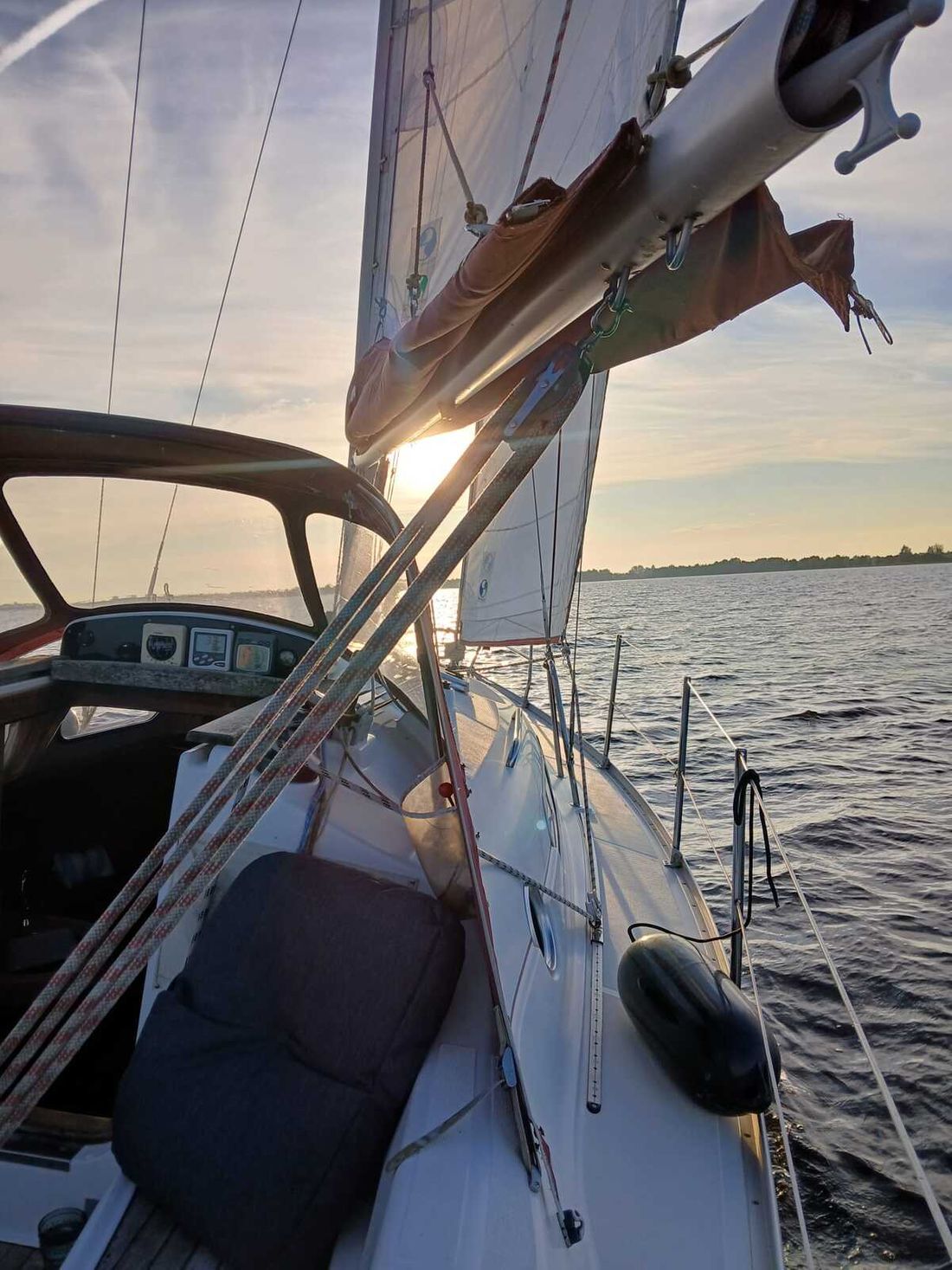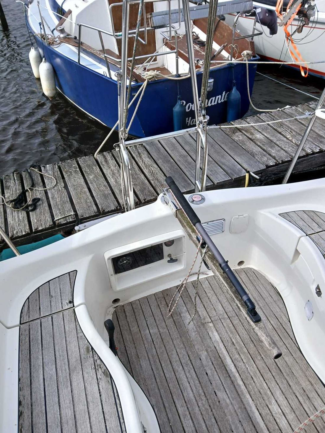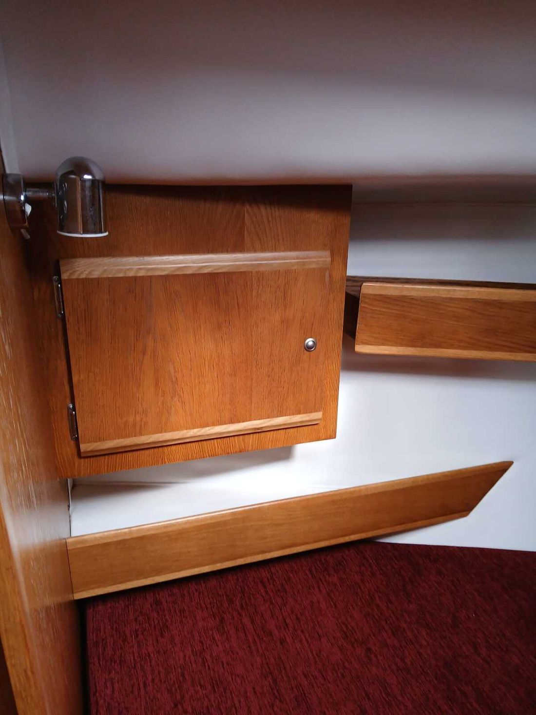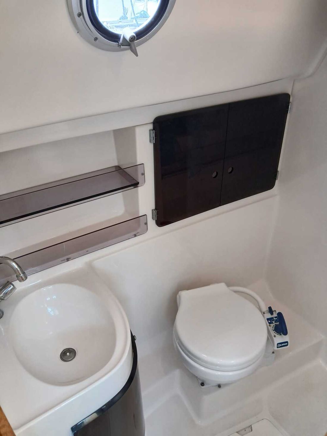 In addition, there is ample storage space for cooking utensils and supplies, making cooking while sailing easy. A hot air stove provides extra comfort, especially during cooler days on the water. The forward cabin is equipped with a V-shaped bed, which offers sufficient space and comfort. In addition, there is practical storage space for clothing and personal belongings. The aft cabin has a double bed. Here too, there is sufficient extra storage space, so that the cabins can remain neat and tidy. The bathroom is efficiently laid out with a Jabsco pump toilet and a sink, which offers everything you need for comfort on board.