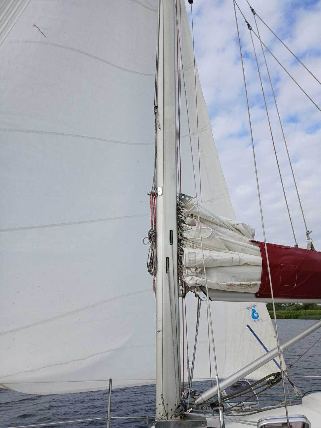 General Sailplan type fractional Comments Sailplan type 7/8 Number of masts 1 Spars material aluminium Comments Spars material single spreader, backstay trimmable Standing rig steel wire Number of sails 4 Sails material dacron Main and stern sails Main sail Comments Main sail battened mainsail Furling mainsail Comments Furling mainsail 2 x Reef Headsails Genoa Comments Genoa 1 reefgenua 3, high aspect 16m2 + 1 reefgenua van 22m2 Jib Furling foresail Winches Number 2 Winches 2 -