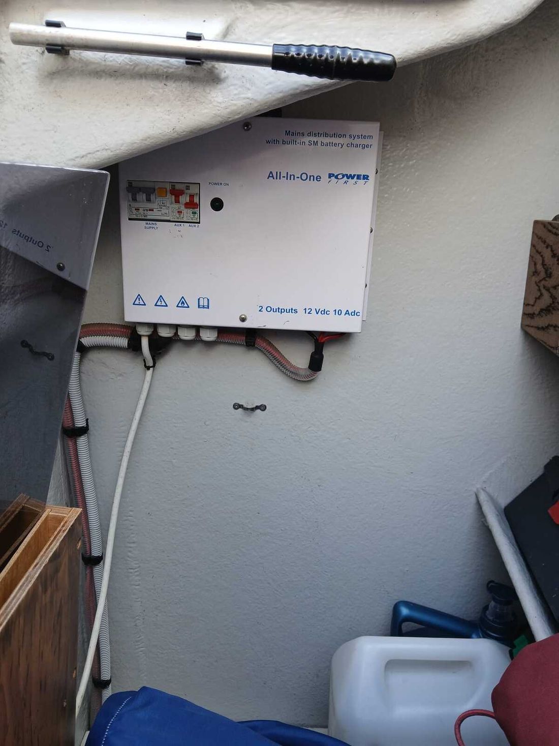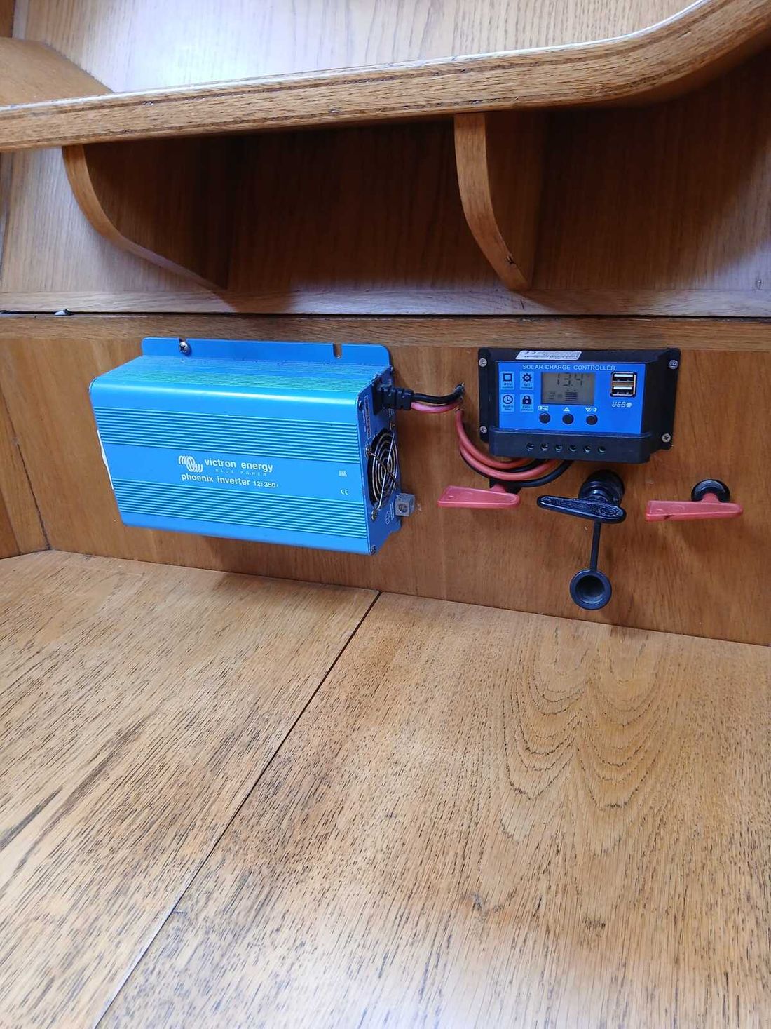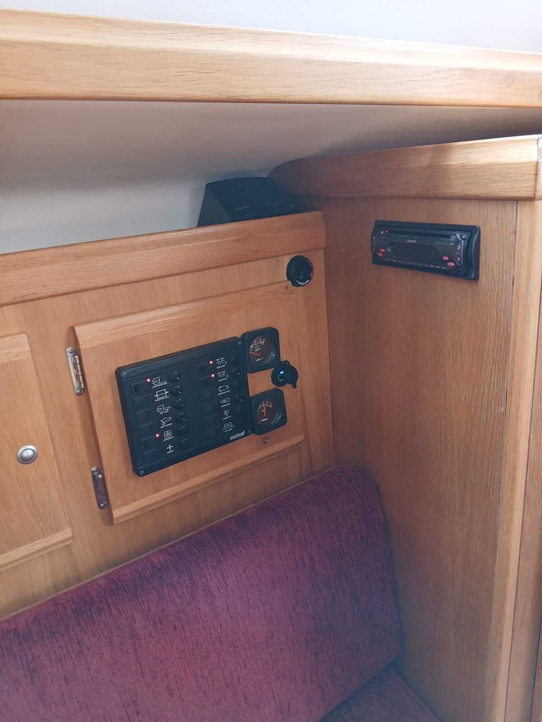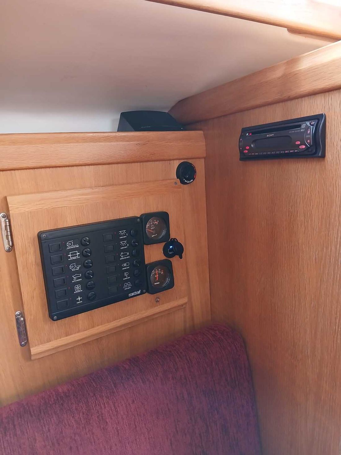 Engines Number of identical engines 1 Starting type electric Main engine Type inboard Brand Yanmar Model 2GM20D Serial number 13576 Year 2004 Number of cylinders 2 Power 18 hp Fuel diesel Brand gearbox Tuff Toro KM2p Drive Transmission shaft Propulsion propellor Cooling system indirect Tank Fuel tanks Number 1 Total fuel tank(s) capacity 70 litre Fuel tank material stainless steel Measuring instruments Fuel tank gauge Oil pressure gauge Temperature gauge Electricity Battery Number 2 Battery charger Capacity 1 Alternator Inverter Voltmeter Shore power Shore power cable Solar panel Capacity 40 Consumption monitor 12V 220V -