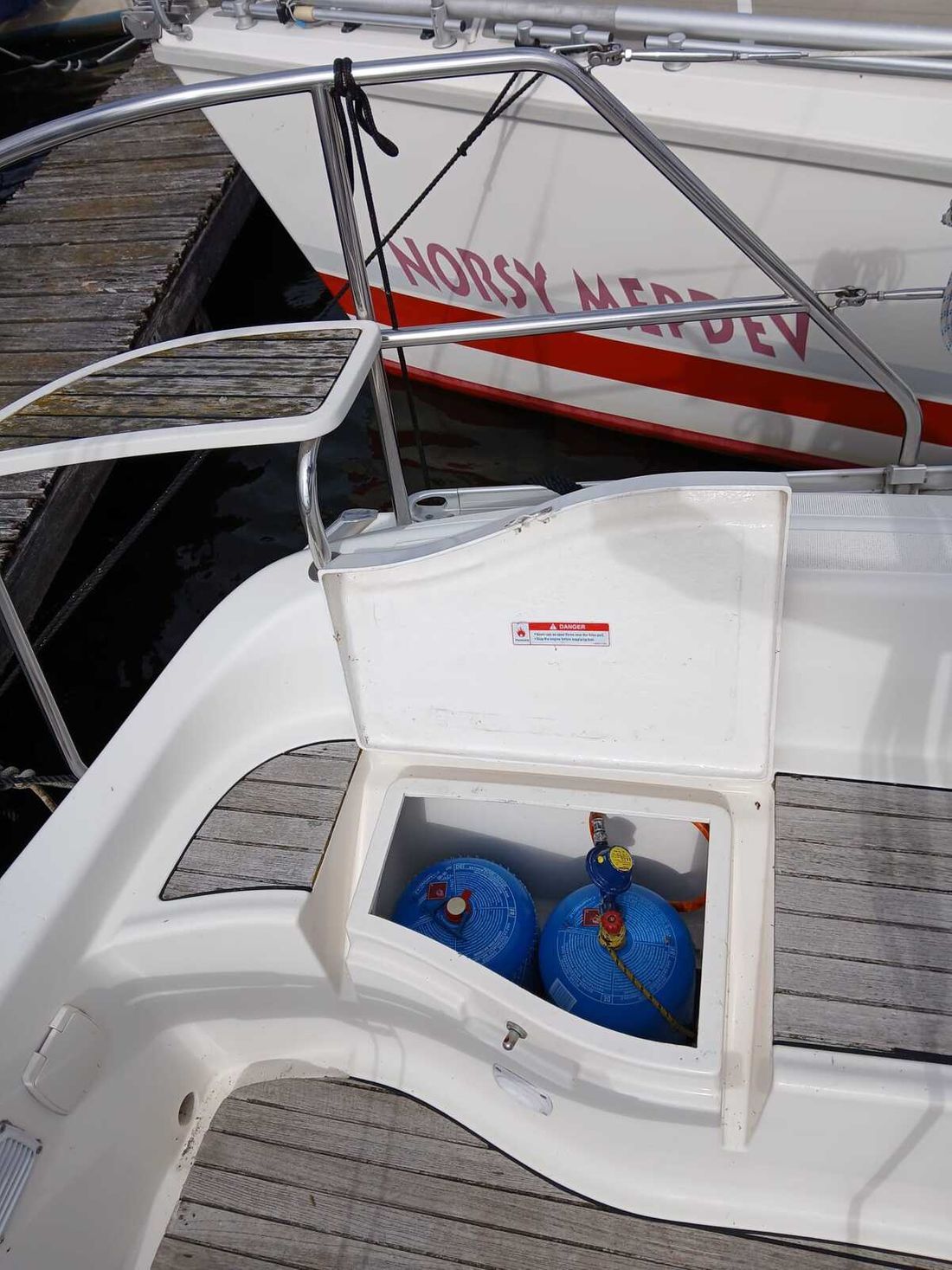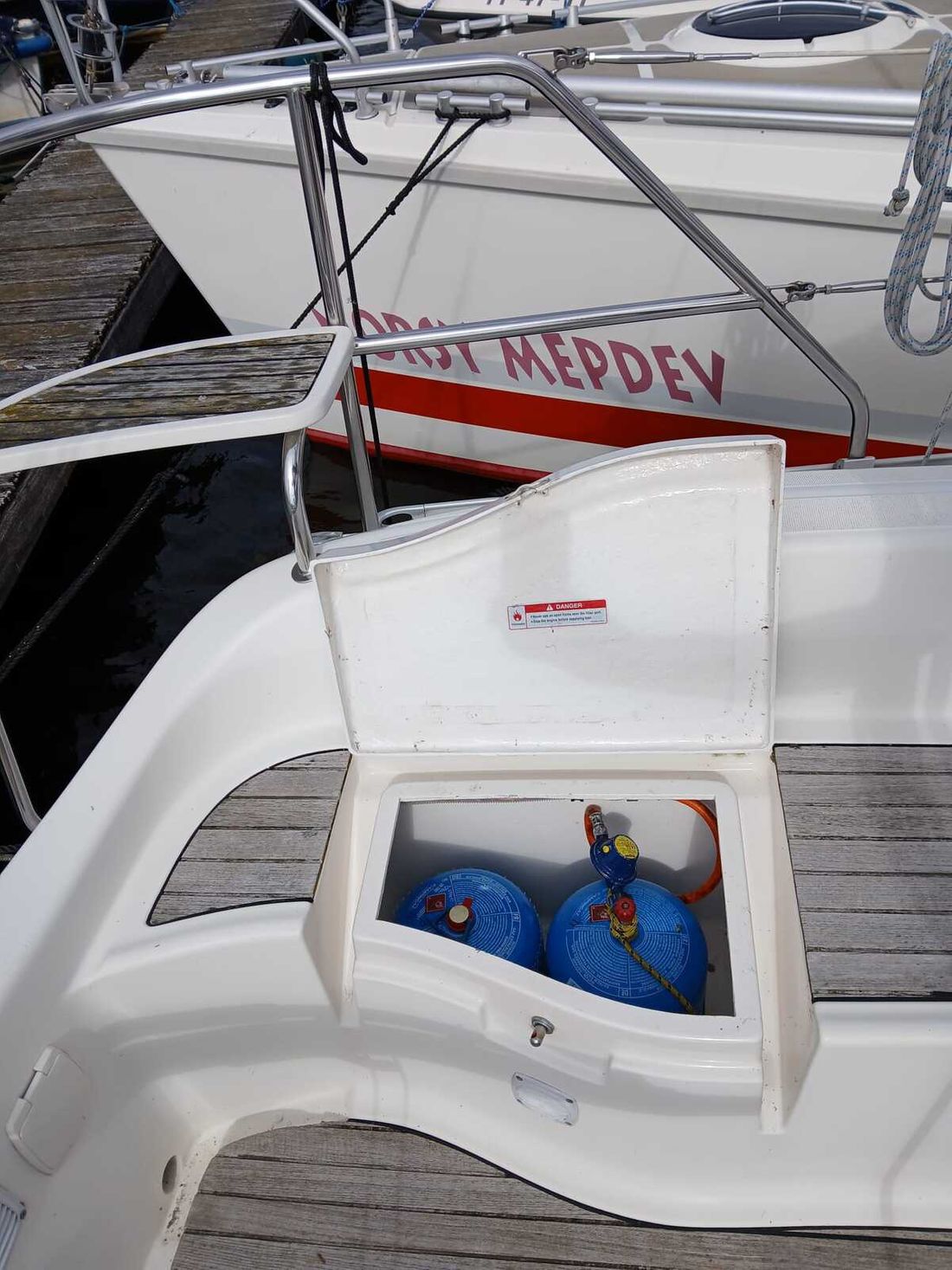 Safety Life buoy Electric Bilge pump Fire extinguisher Life jackets Comments Life jackets 2 self-inflating, 2 orange children's vests (8 and 12 years) not approved. Number 4 Gas bottle locker with drain Self-draining cockpit