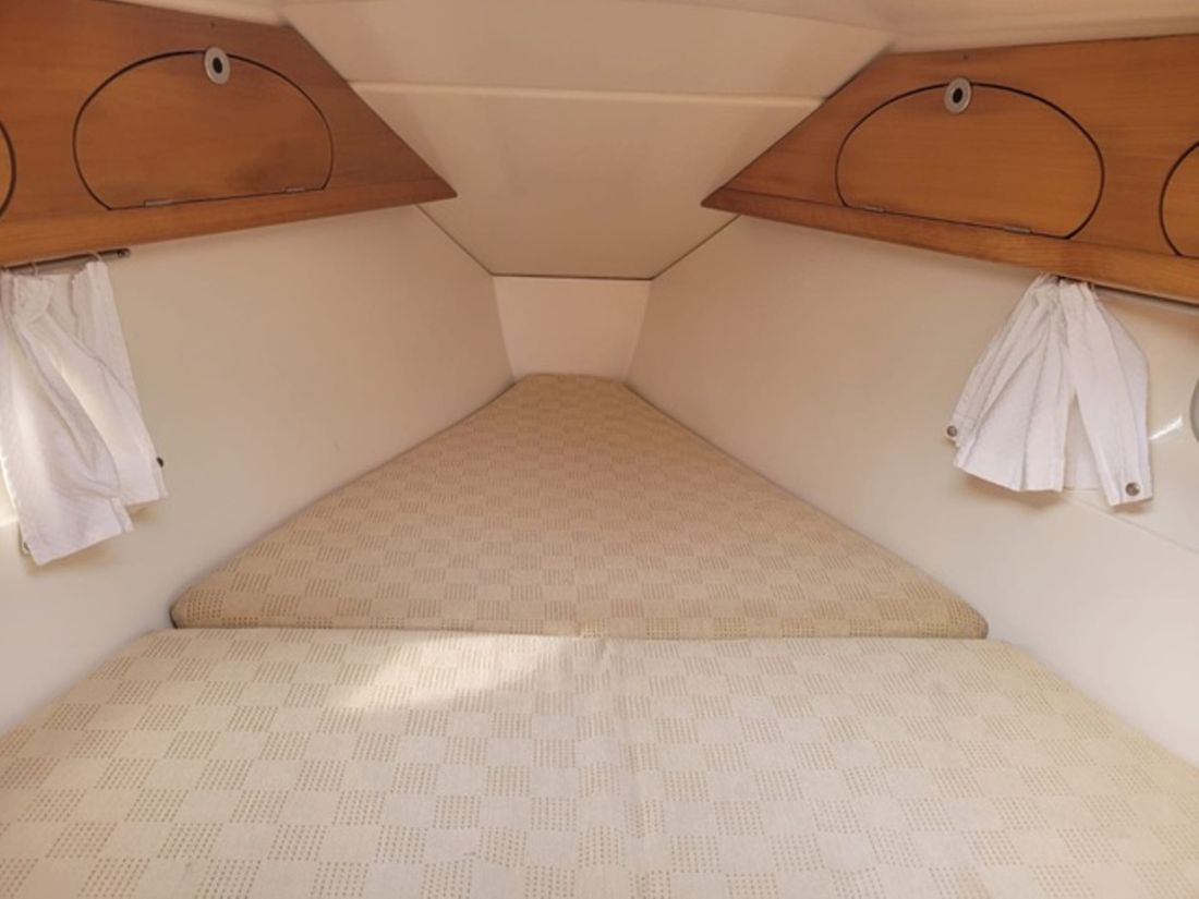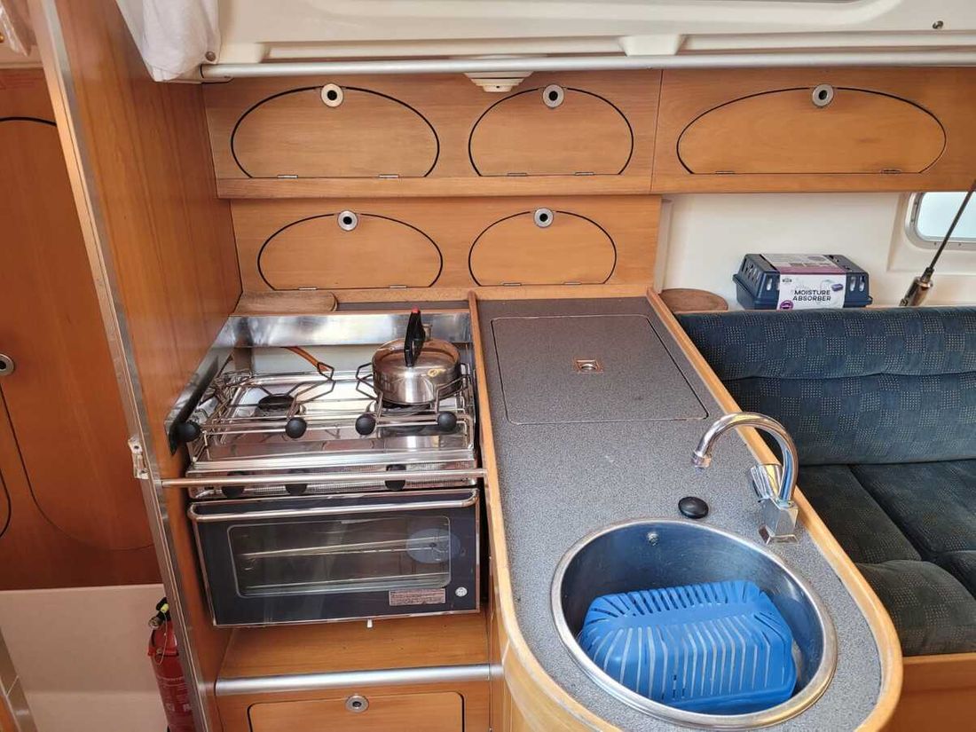Spaces Saloon Separate Dining area Engine room Cabins 2 Saloon Decoration Type interior Modern, wood look Color upholstery blue Mattresses Cushions Curtains Water Water tank & material Capacity 125 litre Water tank material plastic Water tank gauge Water system pressure Hot water Plumbing Number of showers 2 Toilets 1 Manual Entertainment Radio/CD player Kitchen Cooker & fuel Comments Cooker & fuel Gas pipes to be checked for validity date Number 2 Cooking fuel gas Oven Fridge & power source Capacity 72 litre Power source electric Climate control Heating 1 hot air Comments Heating Webasto -