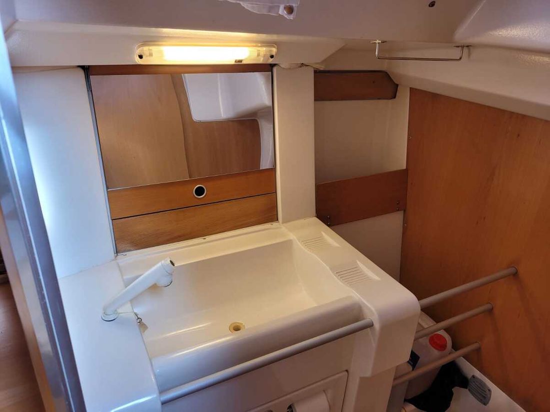 The clever design of the Etap 32i provides excellent sailing characteristics and a practical and comfortable interior. The cockpit offers good seating and the gangways are wide and safely accessible. Inside you will find a light saloon with a practical galley, navigation corner and two comfortable cabins?a double in the front and a second spacious cabin in the back. The wet cell is equipped with a manual toilet and shower.