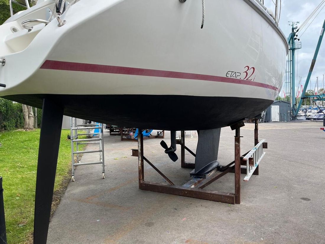 Delivered new Designer Harlé-Mortain (France) Shipyard Etap Yachting Hull number 200-49 Comments Hull number One of the last Etap 32i's produced in the year 2000. CE-category B CE max weight 3975 kg CE-standard B Hull deck superstructure Hull shape roundbilge Hull colour white Deck colour white Deck construction grp (polyester) Comments Deck construction TBS anti-slip matten (Thermo Bonded Sheets) Cockpit aft cockpit Open cockpit Superstructure The foam-filled double hull and deck of Etap yachts is one of their most distinctive and innovative design features. This construction principle has been applied to the Etap 32i, among others, and it provides multiple advantages in terms of safety, insulation, sound and comfort. Dimensions and weights Displacement 3975 kg Ballast 1300 kg Steering and Drift Limitation Steering system helm Comments Steering system The ETAP EVS system (ETAP Vertical Steering system) is an innovative steering system that was used on some Etap yachts, such as the Etap 32i and the Etap 34s. This system clearly distinguishes itself from traditional tiller or wheel steering. ✅ Space-saving — no large steering wheel to get in the way. ✅ Direct and precise steering feel, comparable to a tiller. ✅ Comfortable steering behavior, less tiring than a tiller on long trips. ✅ Better weight distribution possible than with a wheel construction. Position steering system outside control Rudder single Keel/Lee board fixed keel -