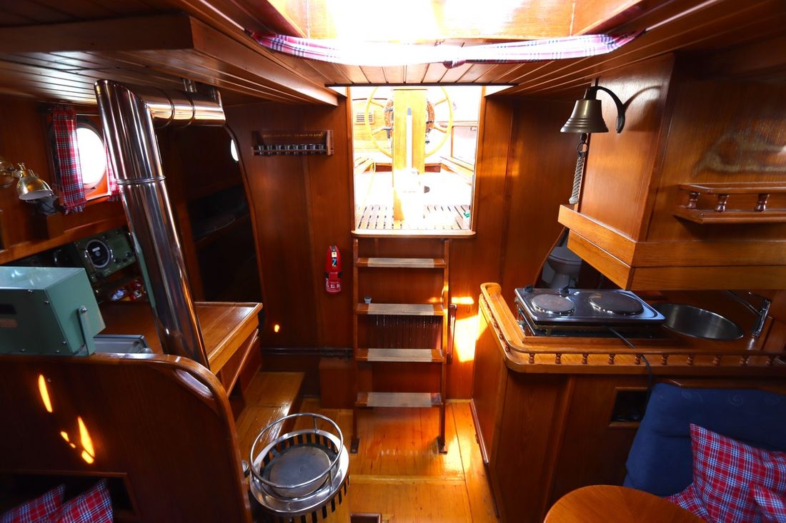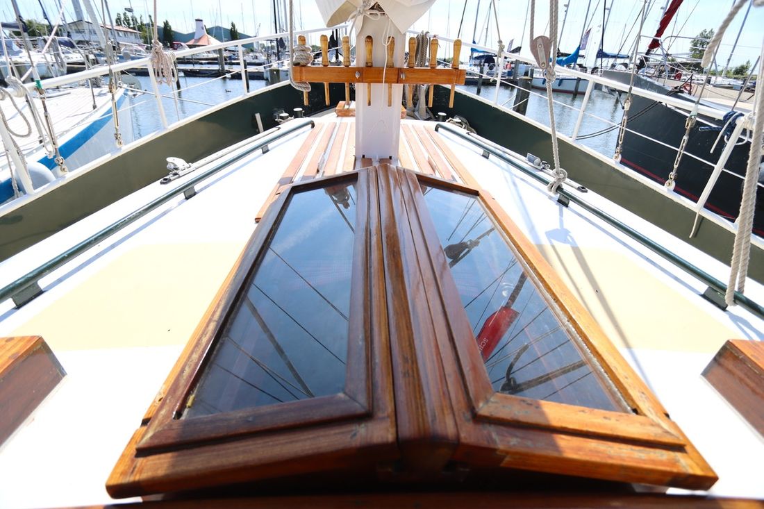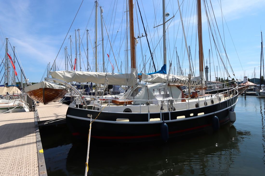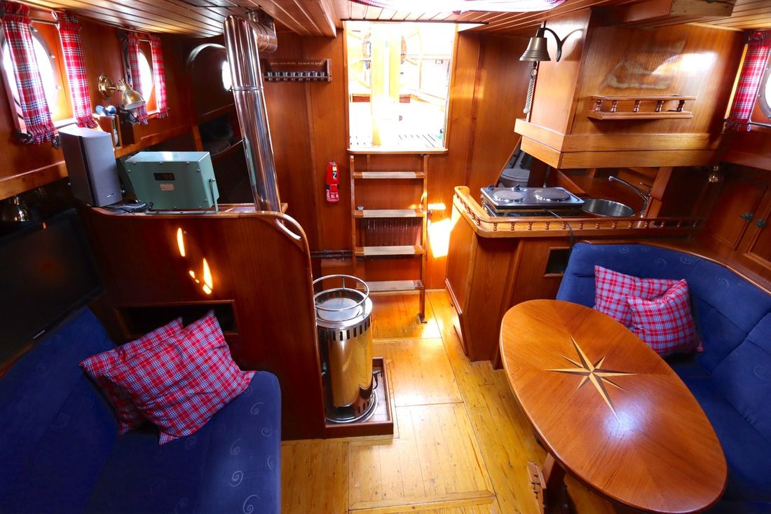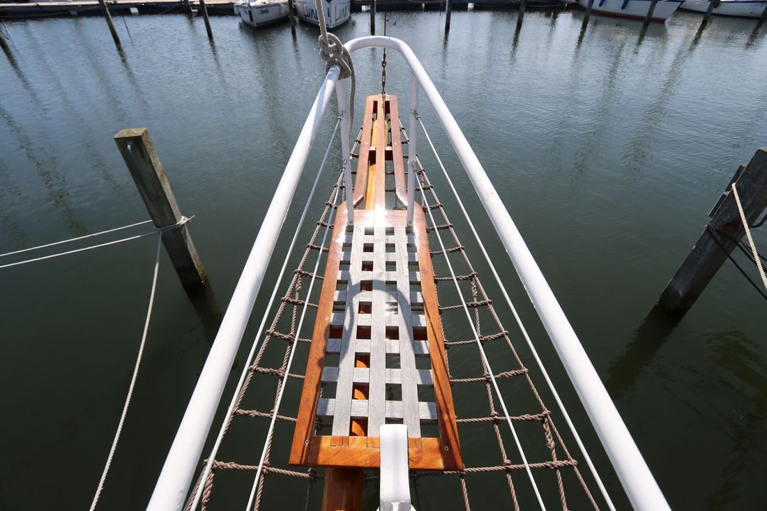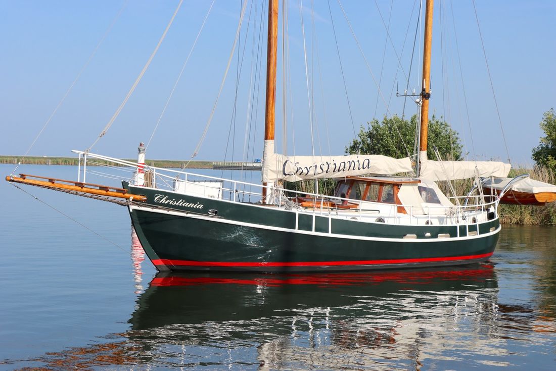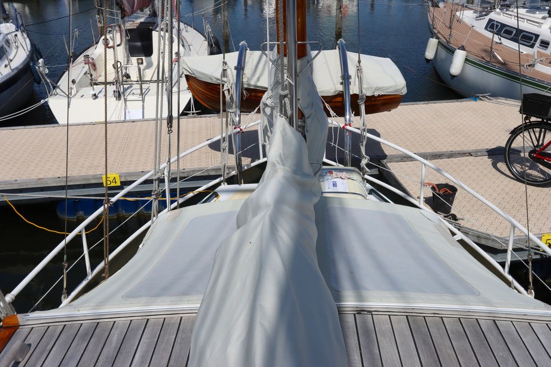 General Sailplan type ketch Number of masts 2 Spars material wood Type fixed Standing rig steel wire Number of sails 7 Main and stern sails Main sail Mizzen Headsails Jib Halfwinder, bollejan -