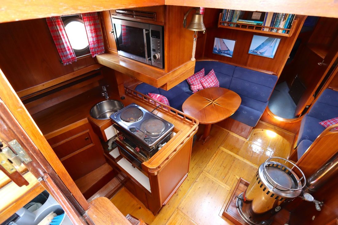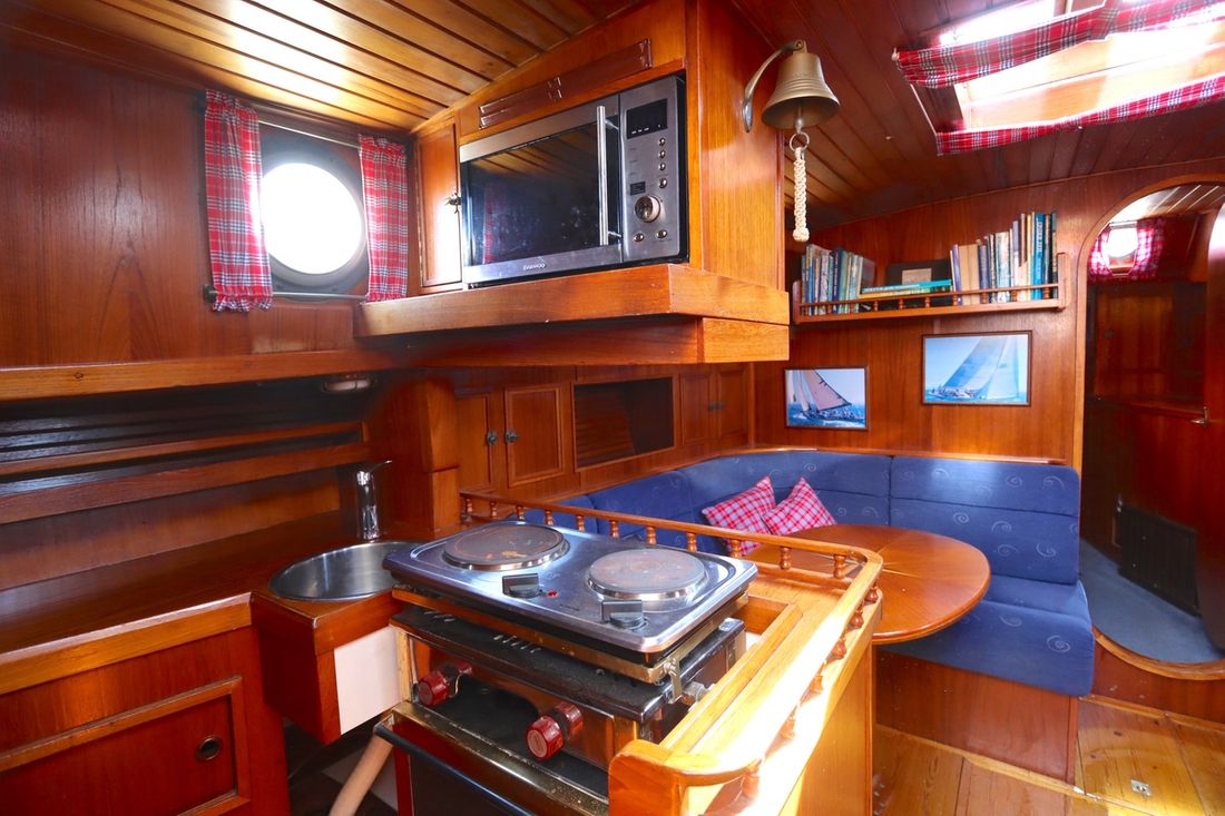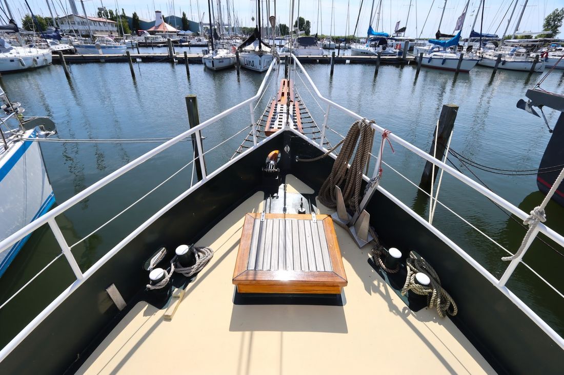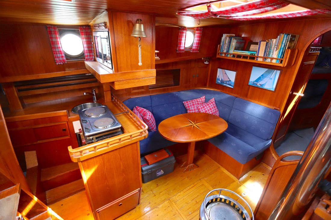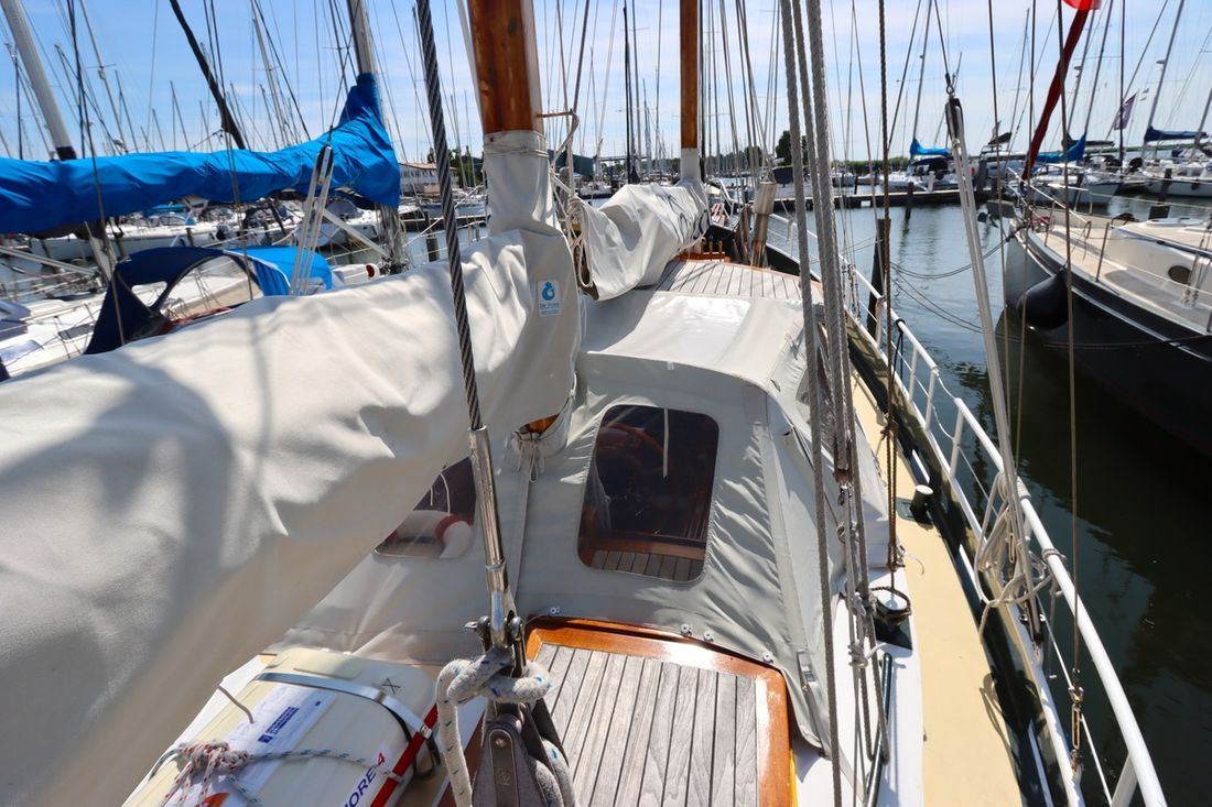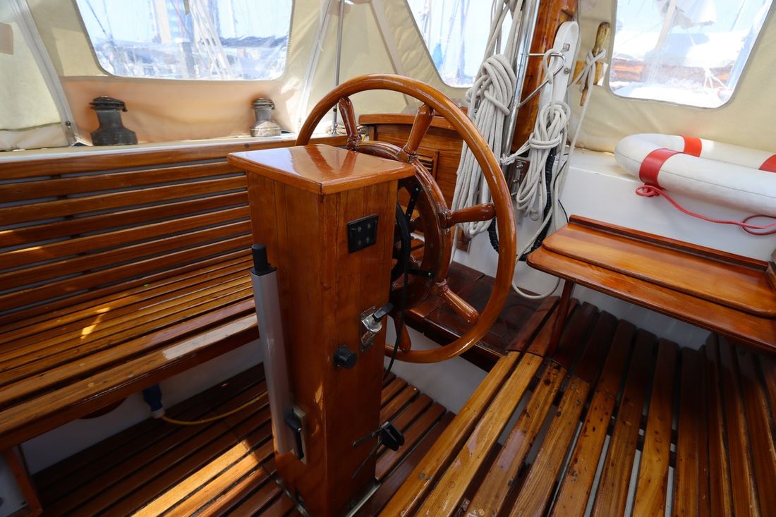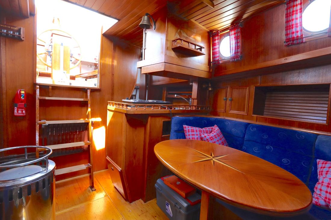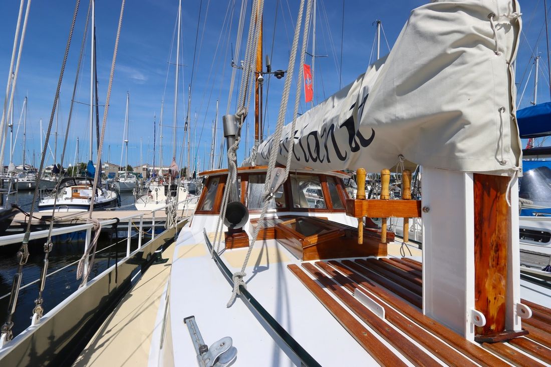 General Sailplan type ketch Number of masts 2 Spars material wood Type fixed Standing rig steel wire Number of sails 7 Main and stern sails Main sail Mizzen Headsails Jib Halfwinder, bollejan -