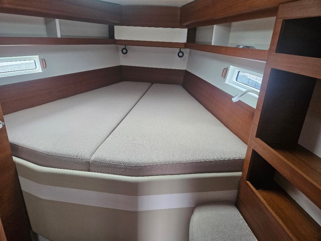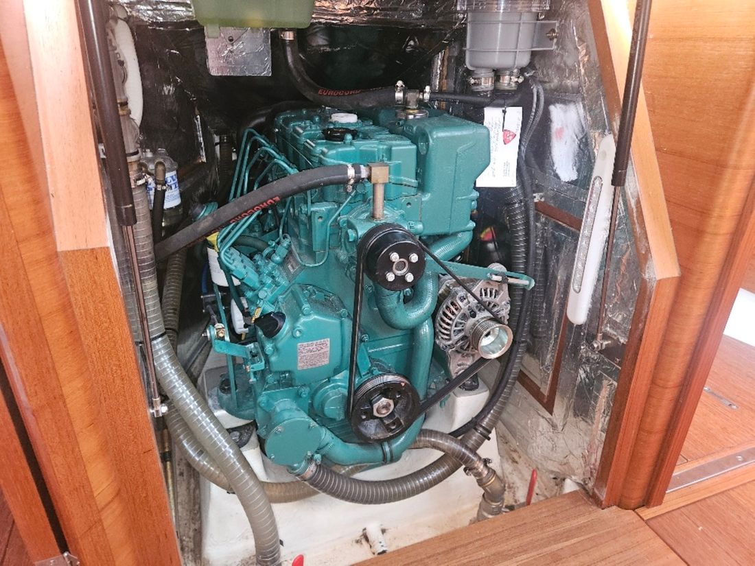 Main engine Type inboard Brand Volvo Penta D2-50F Year 2022 Number of cylinders 4 Power 50 hp Hours counter Engine hours 413 Fuel diesel Drive Transmission saildrive Propulsion screw Cooling system indirect Tank Fuel tanks Total fuel tank(s) capacity 200 litre Fuel tank material stainless steel Performance Max speed 10 knots Cruising speed 8 knots Measuring instruments Fuel tank gauge Tachometer Oil pressure gauge Temperature gauge Bow and stern thruster Bow thruster electric Mobile remote control Electricity Battery Number 9 Battery charger Alternator Battery monitor Inverter Voltmeter Shore power Shore power cable Consumption monitor 12V -