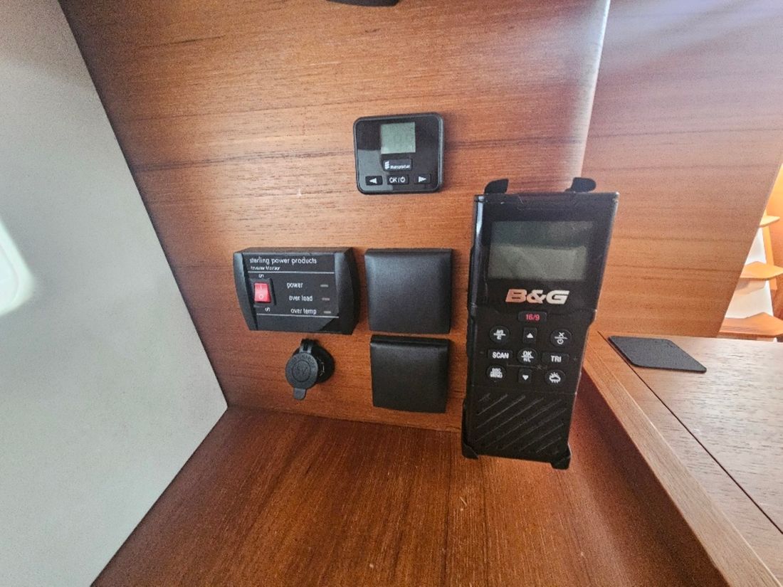 Basic tools Compass Log/speed Brand log/speed B&G Depth gauge Brand depth gauge B&G Wind gauge Brand wind gauge B&G Navigation lights Charts, guides Rudder position indicator Brand Rudder position indicator B&G Modern electronics Autopilot Brand autopilot B&G GPS Brand GPS B&G Chart plotter Brand chart plotter B&G Radar Brand radar B&G Brand AIS B&G Communication VHF Brand VHF B&G -