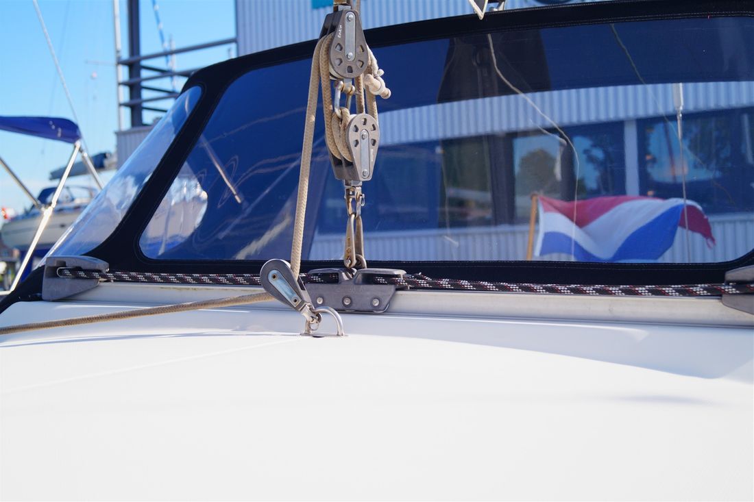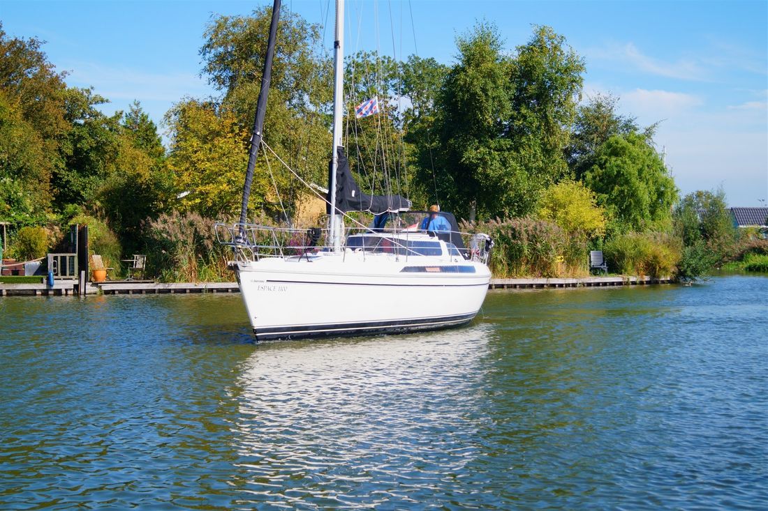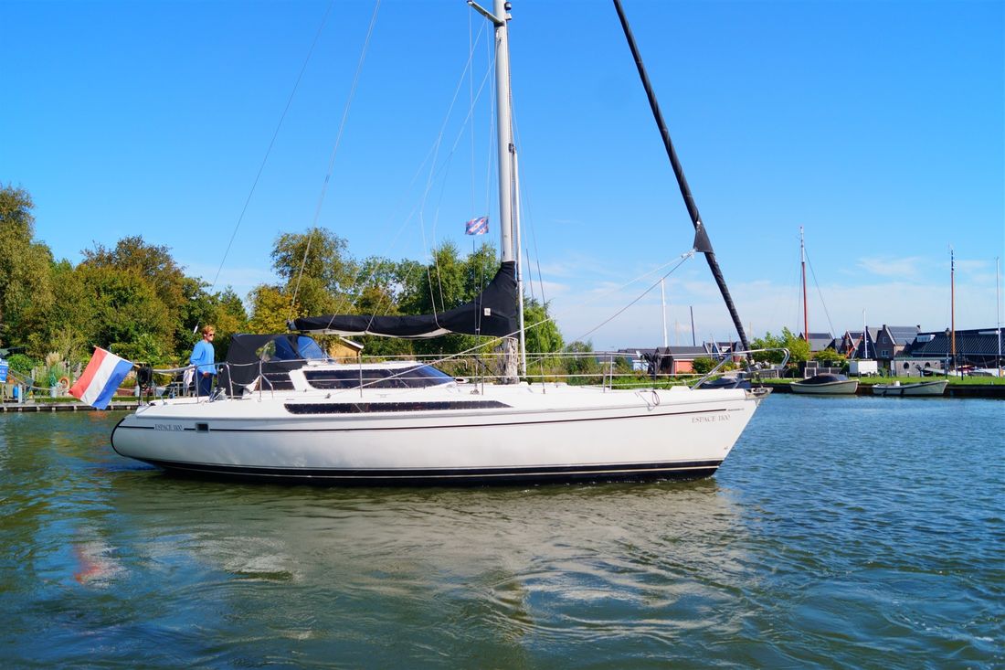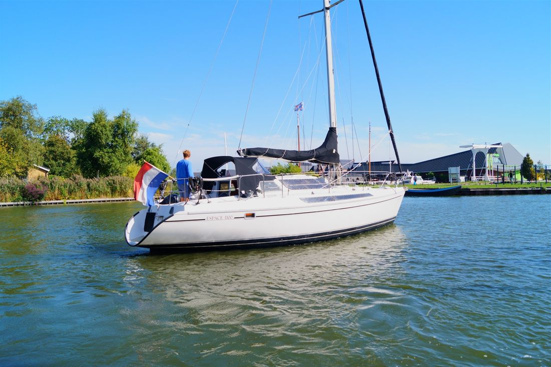 Jeanneau Espace 1100 ? Unique layout & new sails (2024) The Jeanneau Espace 1100 is distinguished by a special layout with a raised saloon that provides plenty of light and good visibility to the outside ? similar to a deck saloon, but with its own character. The living space is spacious and practical, with a comfortable galley and cabins that make this ship very suitable for longer stays. Thanks to the new sails (2024) and the solid build quality, this is a yacht that is immediately ready for carefree sailing pleasure. Navigation equipment: Rudder angle indicator, Depth Sounder (Raymarine ST60+), Log (Raymarine ST60+), Maps and guides, Autopilot (Raymarine binnen en buiten besturing), Chartplotter (Raymarine A7 kaartplotter met Wifi), Wind Station (Raymarine). Staging and technical: Anchor (Boeg en hek anker), Shore power cable, Guard rail, Safety rail, Anchor mount (Ketting), Fenders, Platform, Manual Bilge Pump, Shorepower connector, Manual Windlass, cockpit table, Winch (Handmatige lieren). Domestic Facilities onboard: Water Tank Meter, 12V Outlets, Heater (Hete lucht). Security equipment: PFDs, Self-draining cockpit, Oars, Radar reflector, Gas locker with drain. Kitchen and appliances: Galley, Burner (2 Pits), Refrigerator (Motor vernieuwd 2021). Upholstery: Sprayhood (2022), Blackout Curtains, Seat Cover (rood).