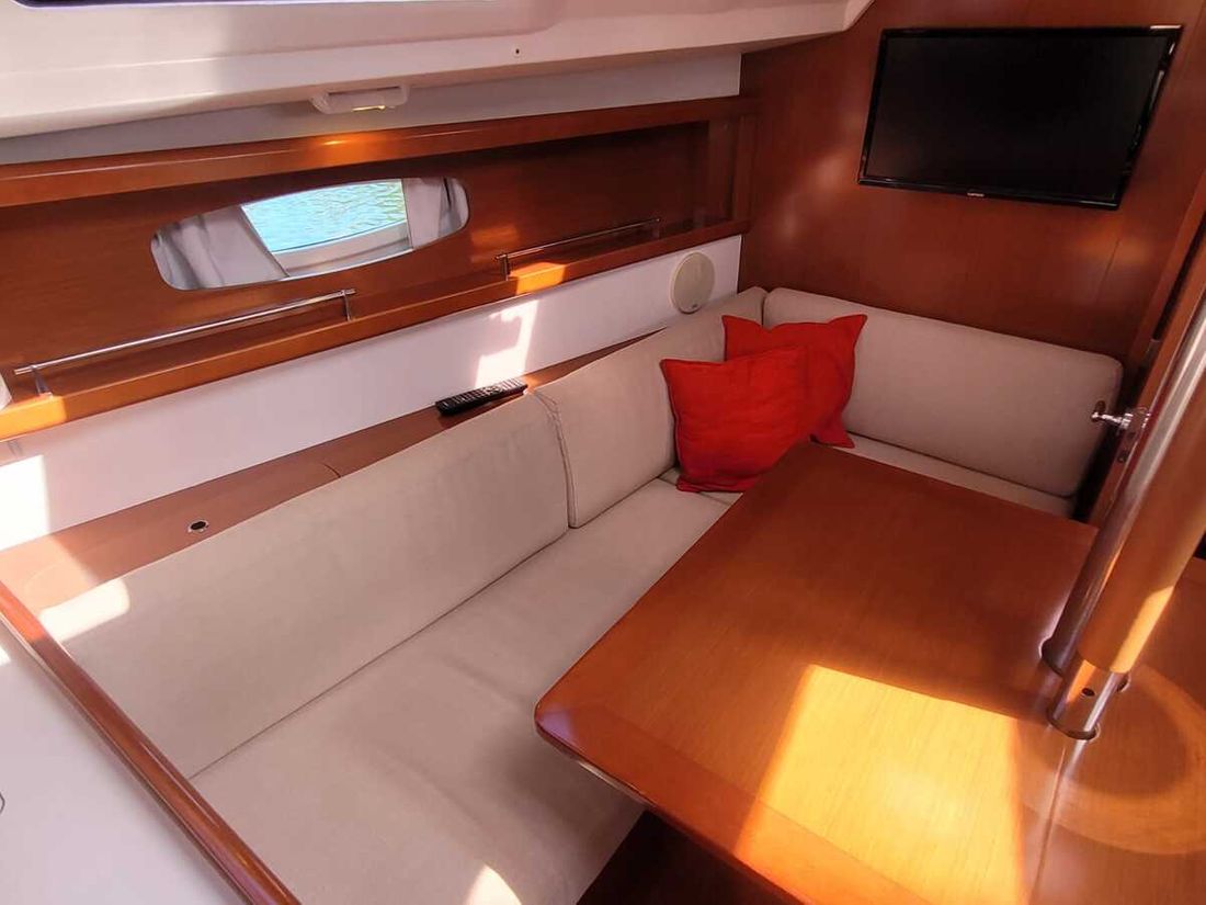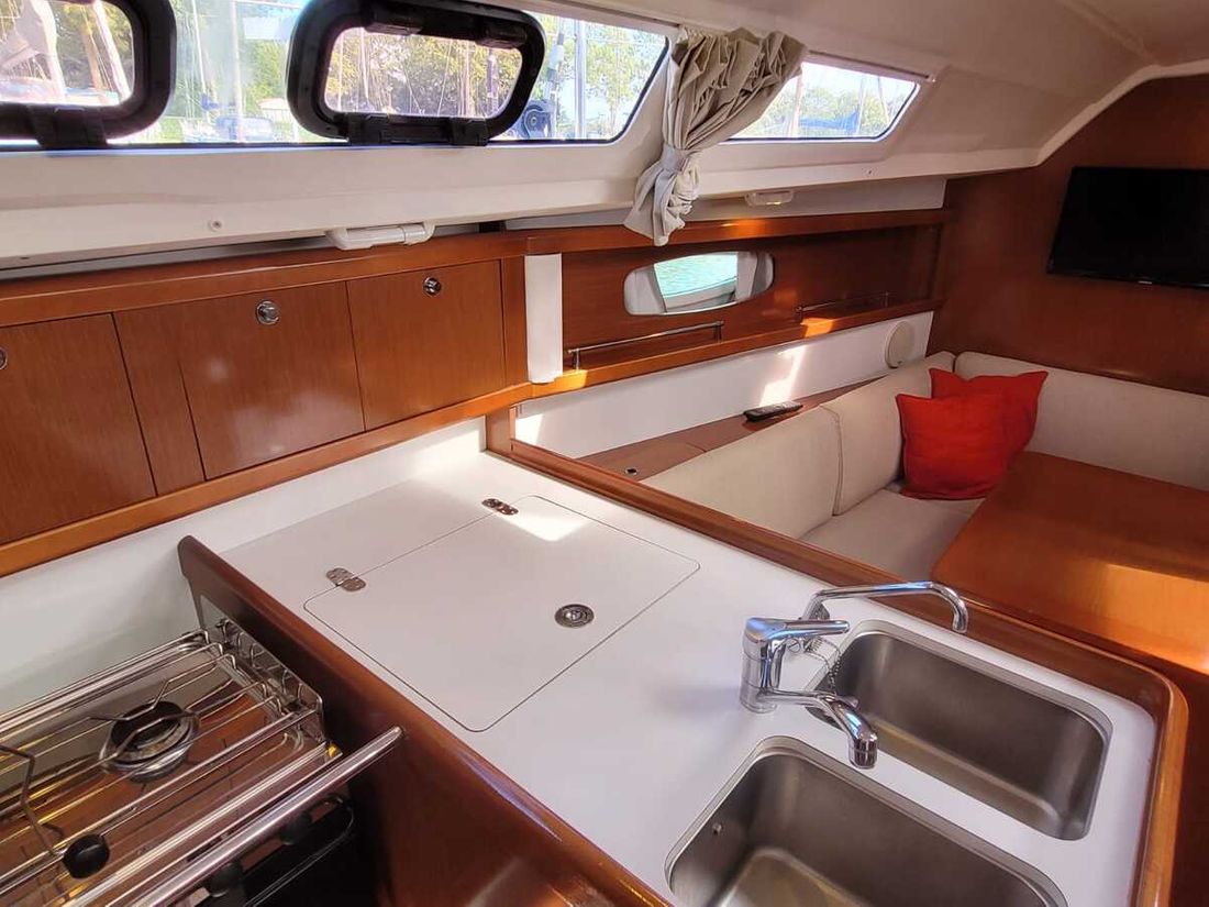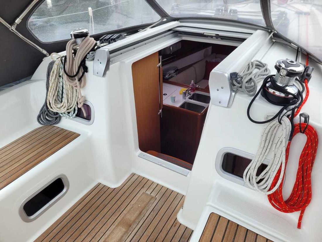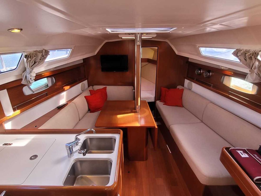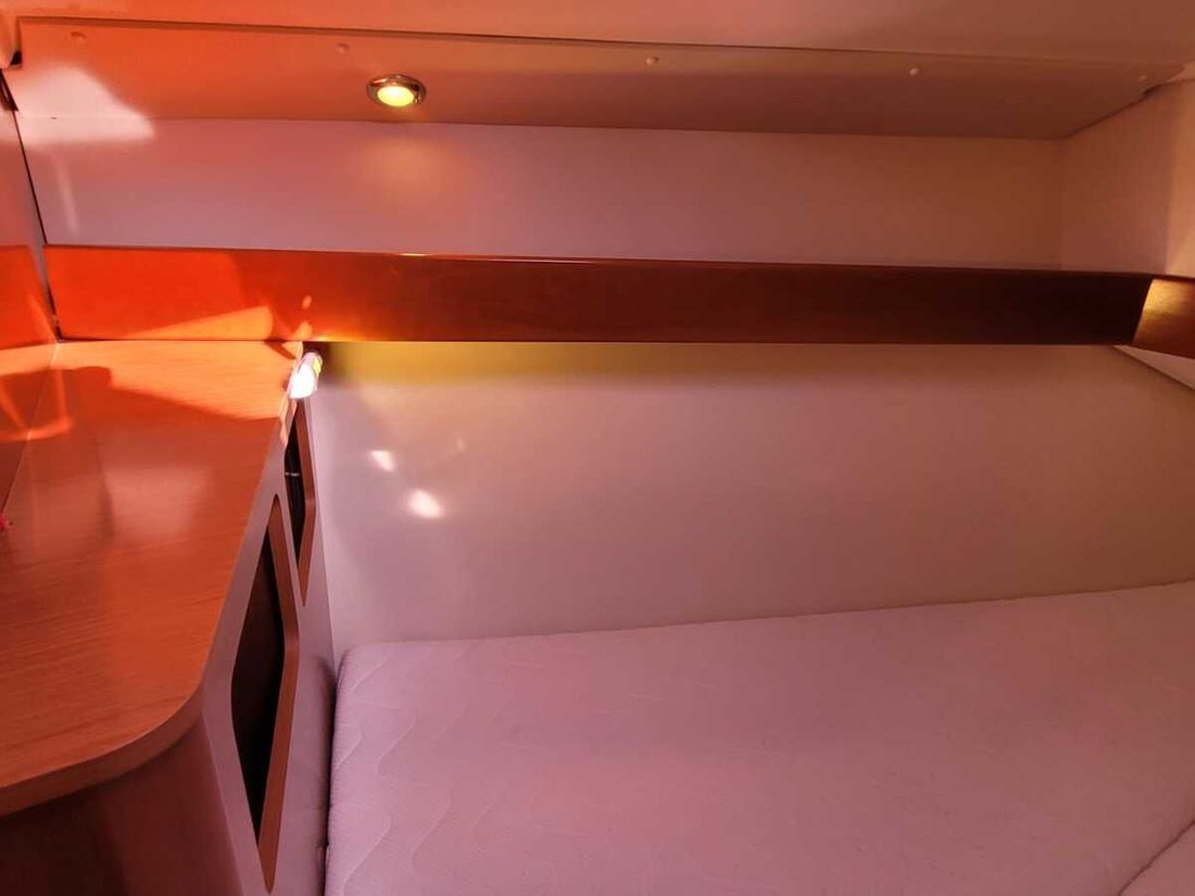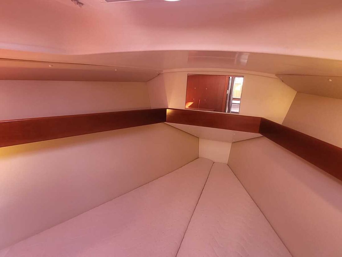 Spaces Saloon Separate Dining area Engine room Cabins 2 Saloon Decoration Type interior Modern, wood look Color upholstery beige Mattresses Cushions Curtains Water Water tank & material Capacity 155 litre Water tank material plastic Water tank gauge Waste water tank material plastic Waste water tank Deck suction Water system pressure Hot water Plumbing Number of showers 2 Comments Number of showers Indoor and outdoor shower Toilets 1 Manual Entertainment Television Comments Television No digital TV Radio/CD player Comments Radio/CD player Outside speaker(s) defective Kitchen Cooker & fuel Comments Cooker & fuel Gas pipes to be replaced beyond shelf life (2023) Number 2 Cooking fuel gas Oven Fridge & power source Power source electric Climate control Heating 1 hot air Comments Heating Webasto -