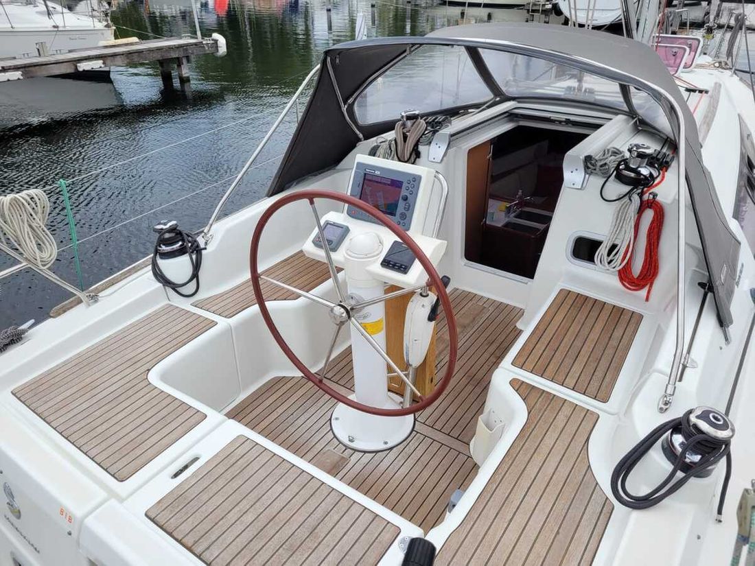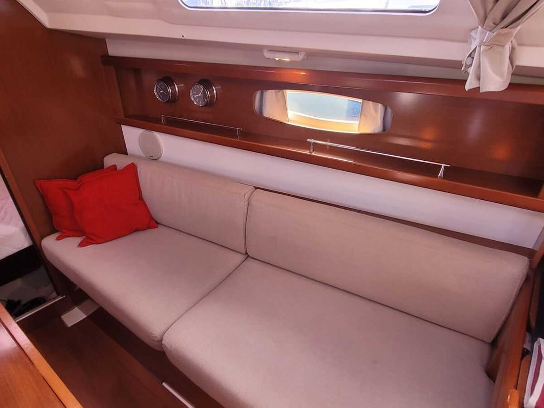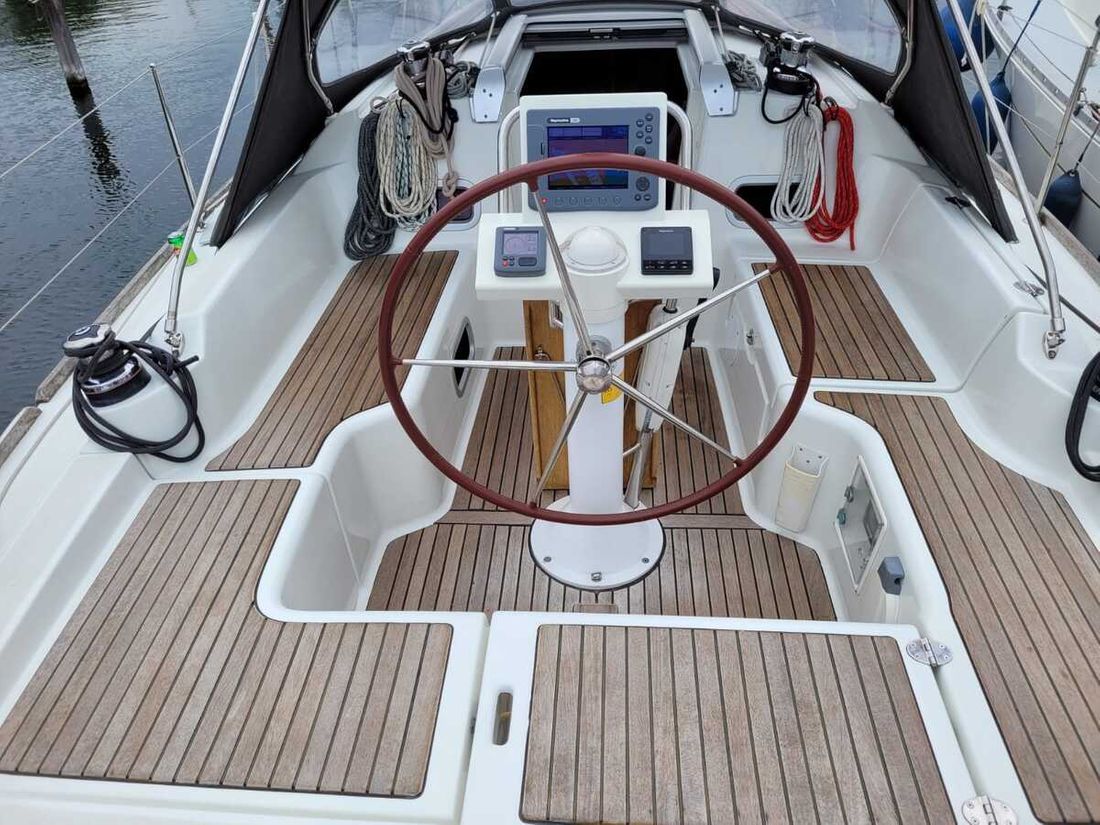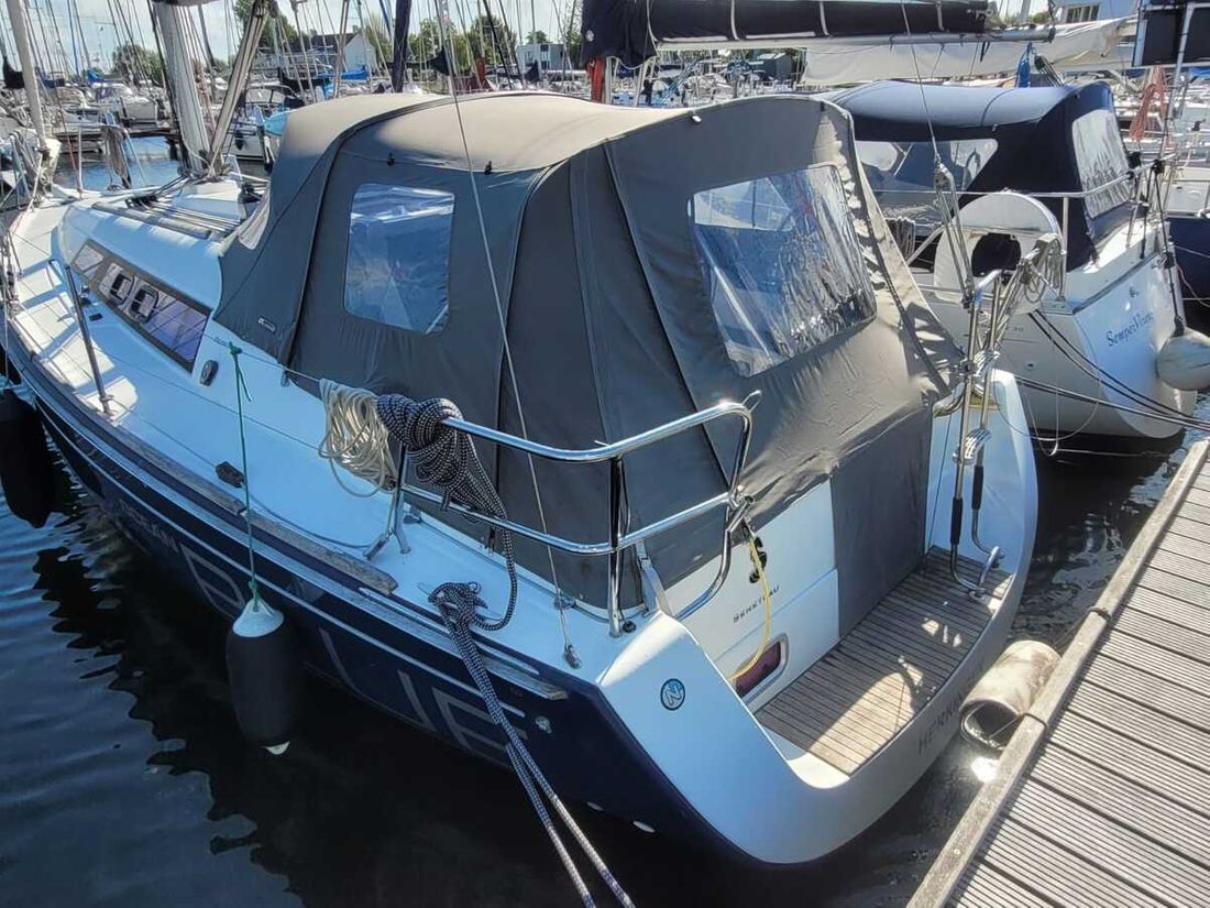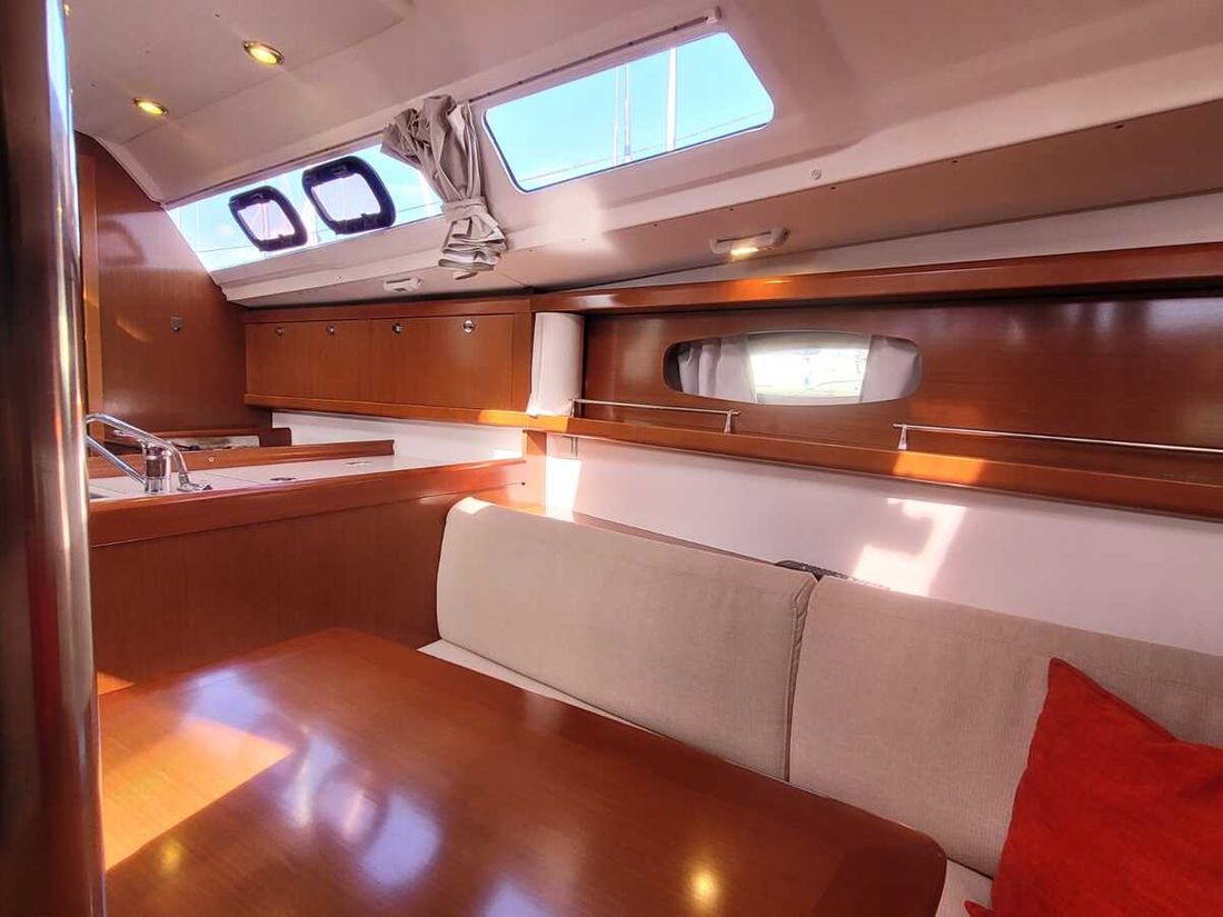 Delivered new Designer Finot/Conq Shipyard Beneteau France Hull number 300 CE-category B CE-standard B Hull deck superstructure Hull shape roundbilge Hull colour blue Deck colour white Deck construction grp (polyester) Cockpit aft cockpit Open cockpit Dimensions and weights Displacement 4850 kg Ballast 1300 kg Steering and Drift Limitation Steering system wheel Position steering system outside control Rudder single Keel/Lee board fixed keel -