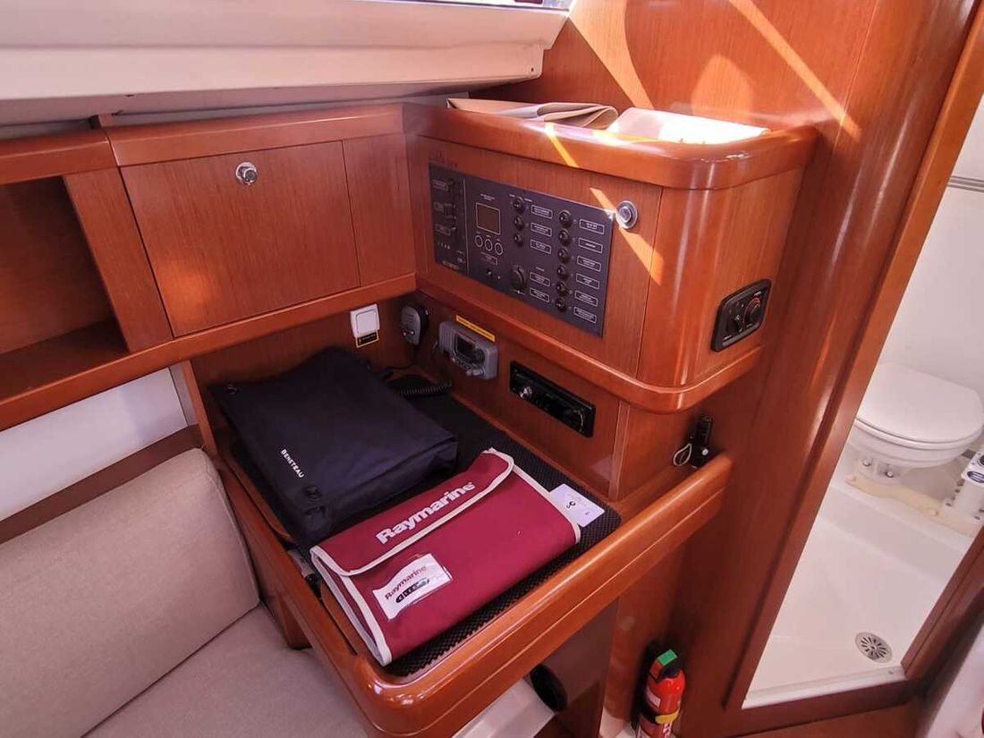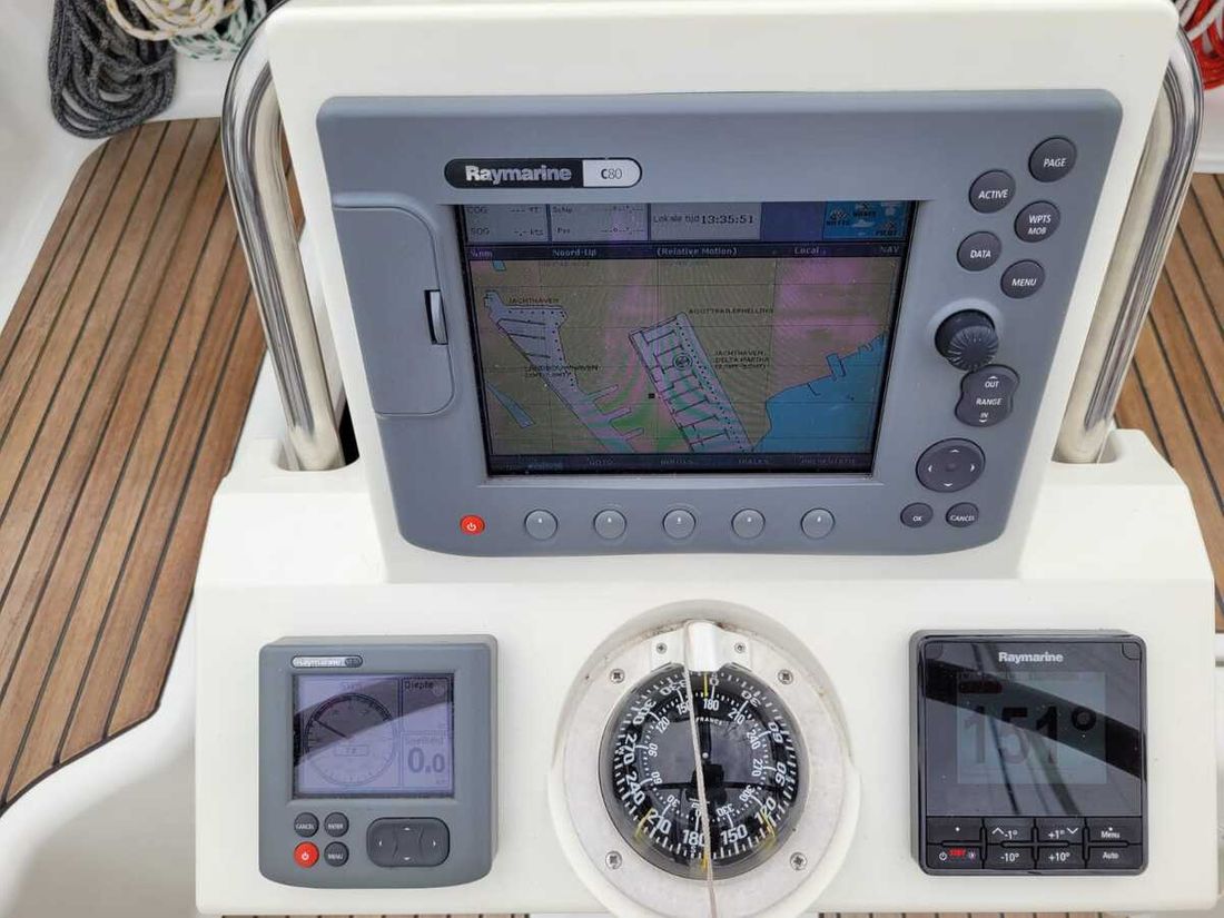 Basic tools Compass Brand kompas Plastimo Log/speed Brand log/speed Airmap Depth gauge Wind gauge Brand wind gauge Raymarine ST70 Navigation lights Modern electronics Autopilot Brand autopilot Raymarine GPS Chart plotter Brand chart plotter Raymarine C80 Communication VHF Brand VHF Raymarine -