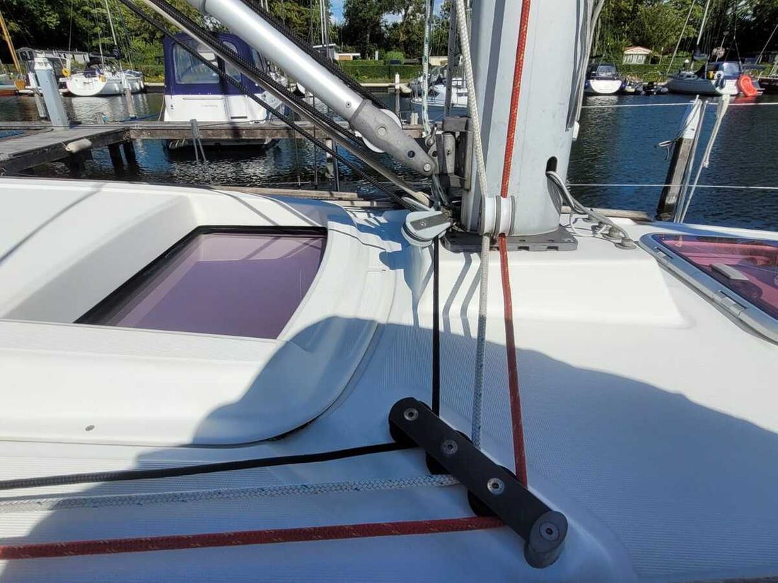 General Sailplan type fractional Number of masts 1 Spars material aluminium Standing rig steel wire Number of sails 2 Sails material dacron Manufacturer Elvstrom Sails Main and stern sails Main sail Comments Main sail The mainsail cover zipper needs to be replaced Sails manufacturer Elvstrom Sails - 2010 Headsails Genoa Comments Genoa Including UV band Brand Genoa Elvstrom Sails - 2010 Winches Number 2 Number 2 Winches 4x Harken -