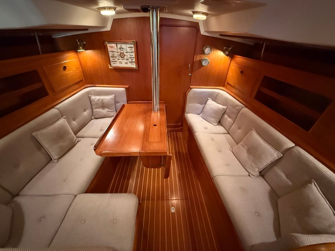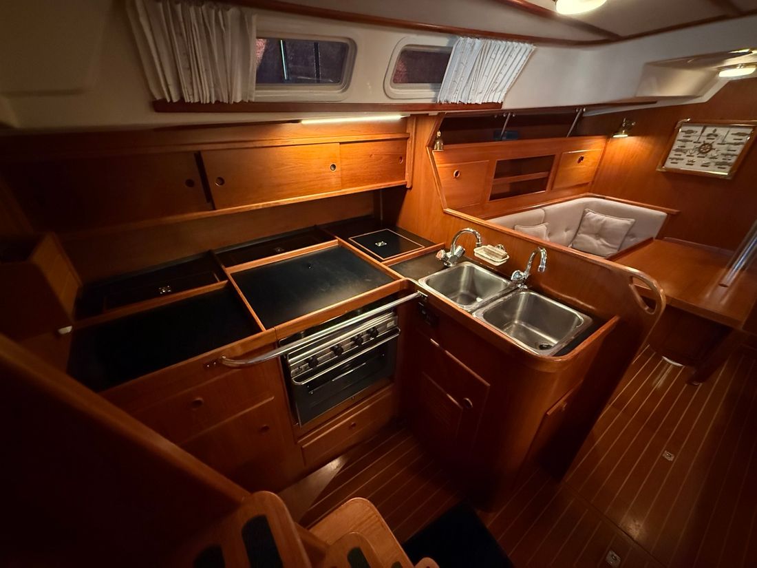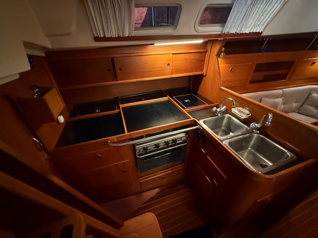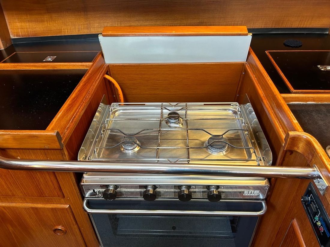 Spaces Saloon Cabins 1 Saloon Decoration Type interior Classic, warm Color upholstery beige Mattresses Cushions Curtains Water Water tank & material Water tank material stainless steel Water system pressure + manual Hot water Deck Shower Plumbing Number of showers 1 Toilets 1 Manual Entertainment Radio/CD player Kitchen Cooker & fuel Number 4 Cooking fuel gas Oven Fridge & power source Power source electric Climate control hot air -