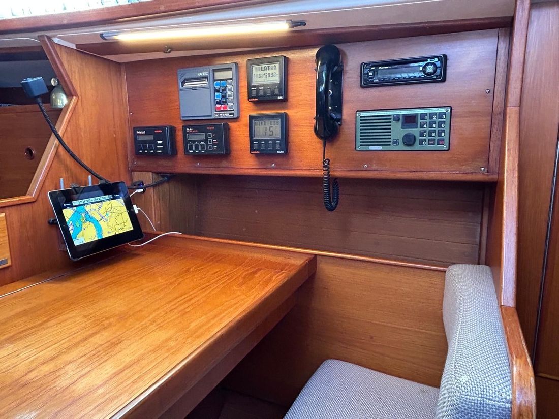 Basic tools Compass Log/speed Brand log/speed Raymarine ST60 Depth gauge Brand depth gauge Raymarine ST60 Wind gauge Brand wind gauge Raymarine ST60 Navigation lights Modern electronics Autopilot Brand autopilot Autohelm ST 4000 GPS Brand GPS Autohelm ST50 Chart plotter Brand chart plotter Raymarine E7 Brand AIS EM-Trak B924 Communication VHF Comments VHF Sailor RT 2048 met kuipspeaker Brand VHF Sailor Brand Weatherfax/Navtex JRC navtex met printer. (Defect) -
