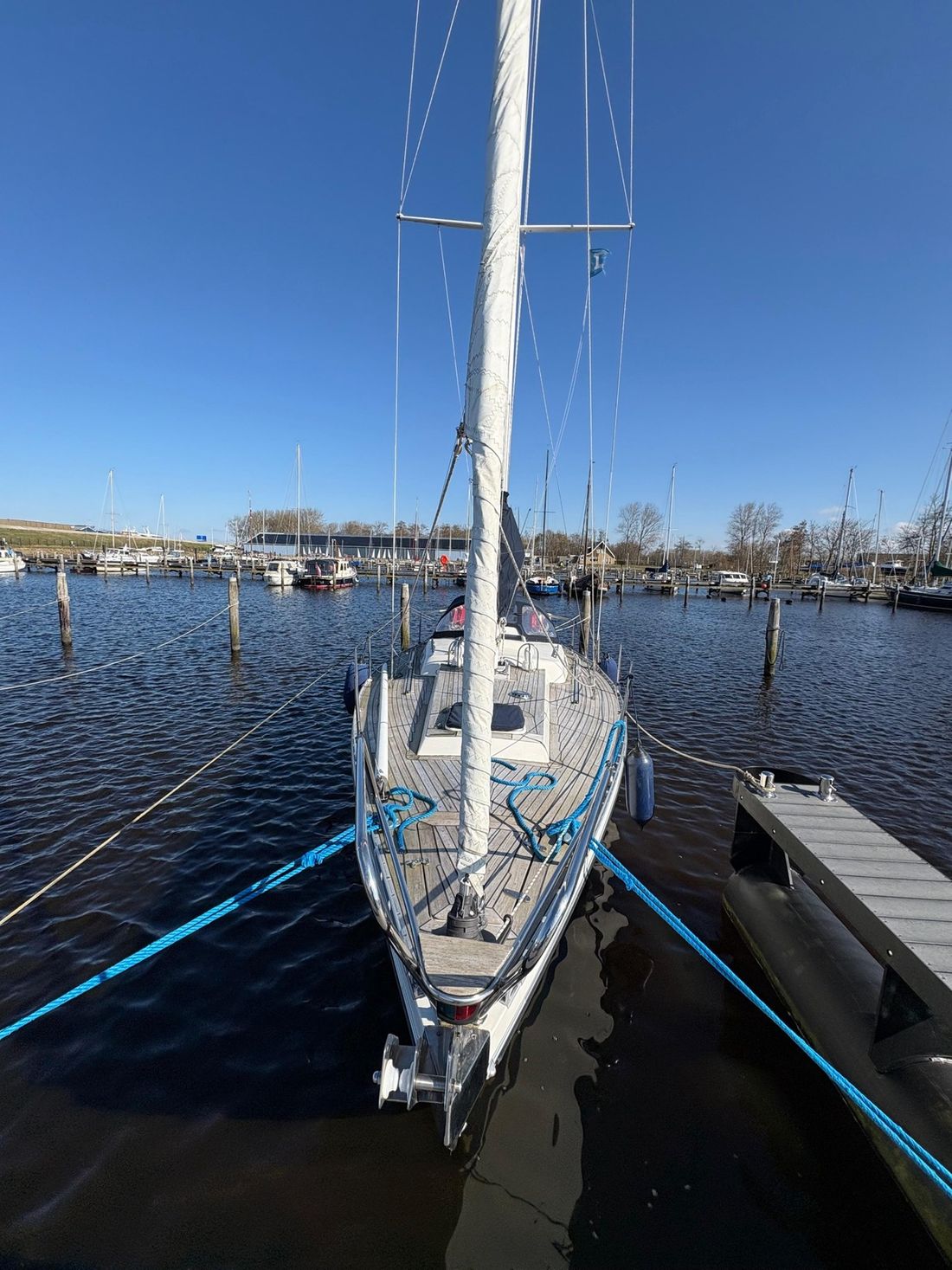 General Sailplan type sloop Number of masts 1 Spars material aluminium Standing rig steel wire Number of sails 5 Sails material nylon Manufacturer Hagoort Sails en De Vries Sails Main and stern sails Main sail Comments Main sail Battened mainsail, in good condition, Sails manufacturer Hagoort Sails Headsails Genoa Comments Genoa In good condition Brand Genoa Hagoort Sails Jib Comments Jib High Aspect jib from Hagoort Sails, in good condition Furling foresail Storm jib Comments Storm jib De Vries Sails Spinnaker Brand Spinnaker De Vries Sails Winches Number 5 -