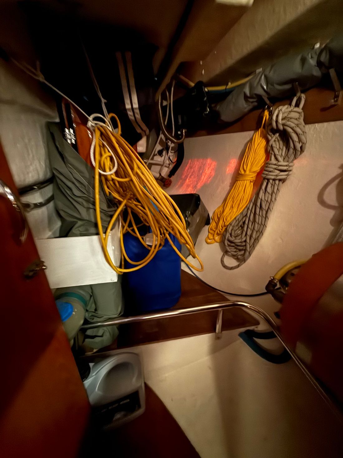 Safety Life buoy Life raft Comments Life raft Life raft is beyond inspection Bilge pump Fire extinguisher Comments Fire extinguisher Inspection unknown Flares Comments Flares Inspection unknown Gas bottle locker with drain Self-draining cockpit
