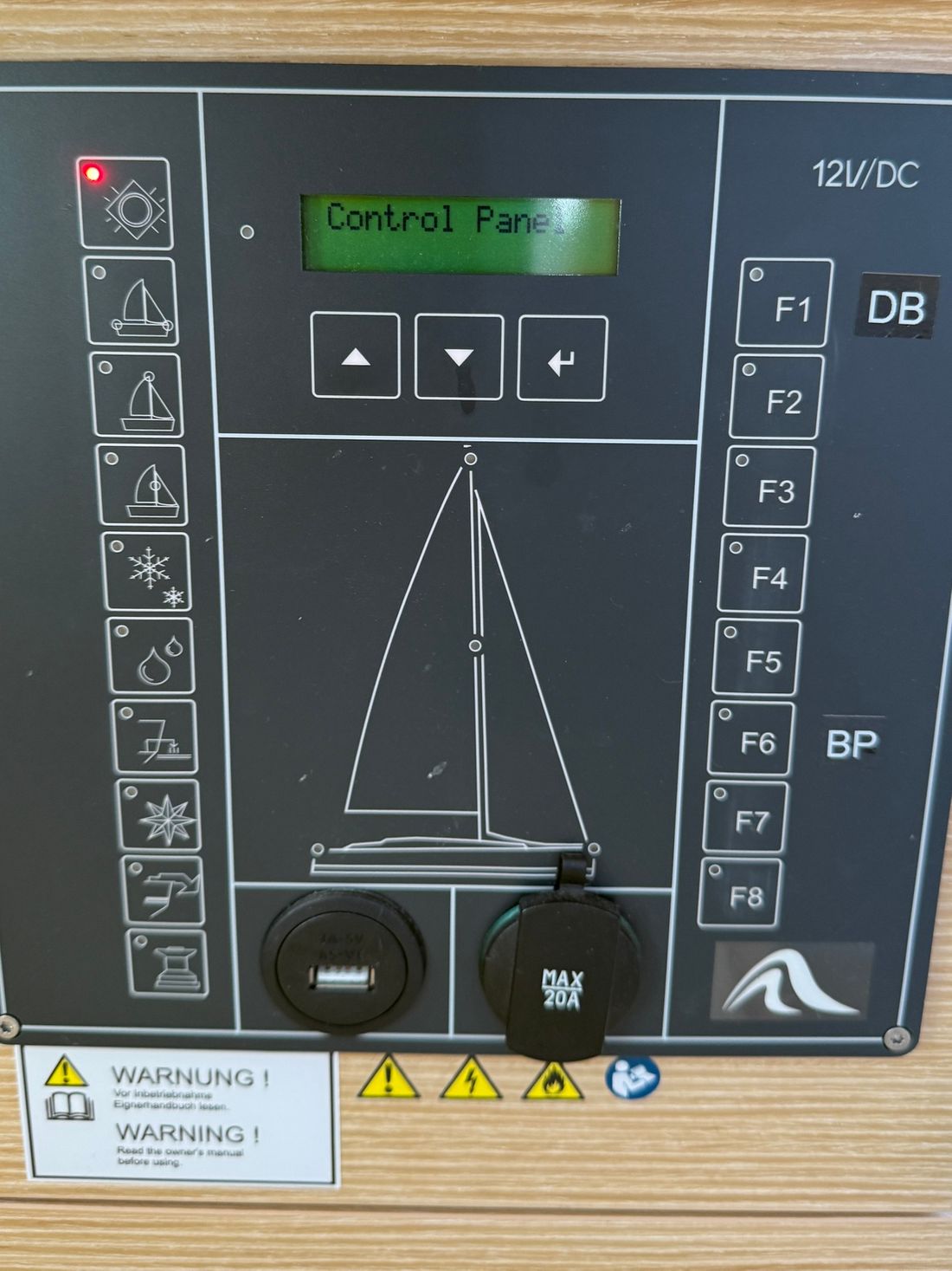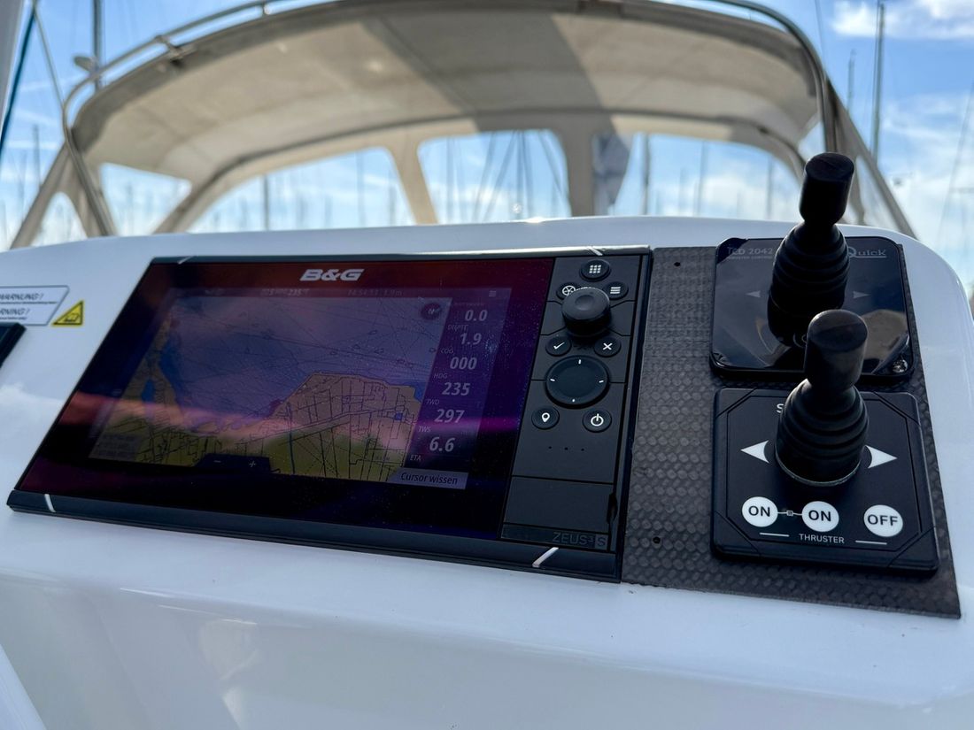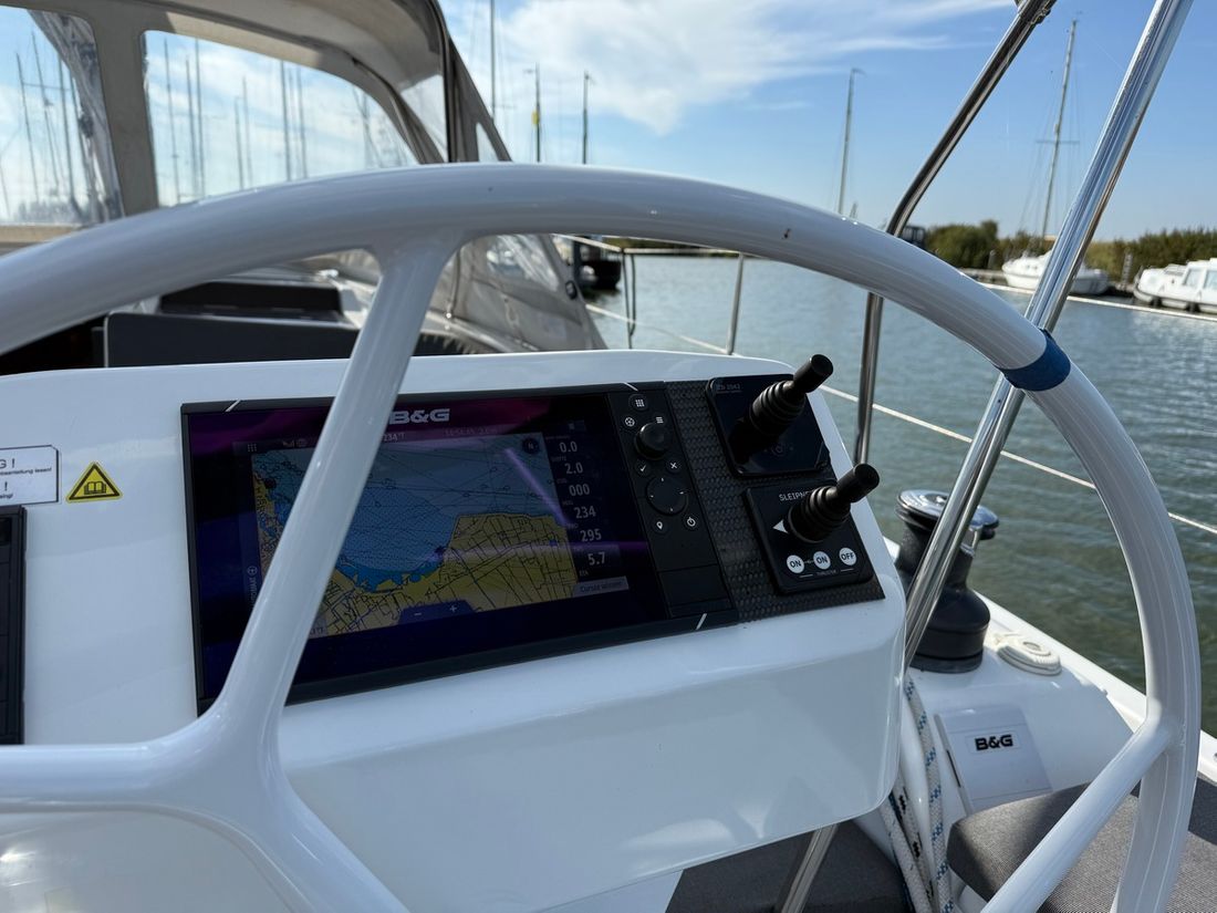 Basic tools Compass Brand kompas Silva Log/speed Brand log/speed B&G Depth gauge Brand depth gauge B&G Wind gauge Brand wind gauge B&G Navigation lights Charts, guides Rudder position indicator Modern electronics Autopilot Brand autopilot B&G GPS Chart plotter Brand chart plotter 2x bakboord + stuurboord Communication VHF Brand VHF 2x B&G -