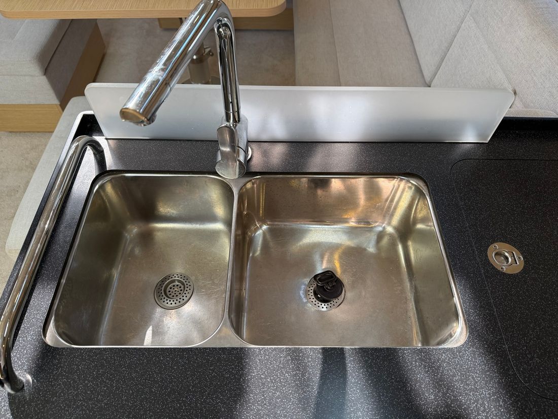 Spaces Saloon Headroom 200 centimetres Cabins 3 Fixed 6 Extra 2 Decoration Type interior Modern, light Curtains Water Water tank & material Capacity 450 litre Water tank material plastic Water tank gauge Waste water tank Water system pressure Hot water Deck wash pump Deck Shower Plumbing Number of showers 3 Toilets 2 Electric Entertainment Radio/CD player Kitchen Cooker & fuel Number 3 Cooking fuel gas Oven Microwave Fridge & power source Freezer Climate control hot air Central heating -