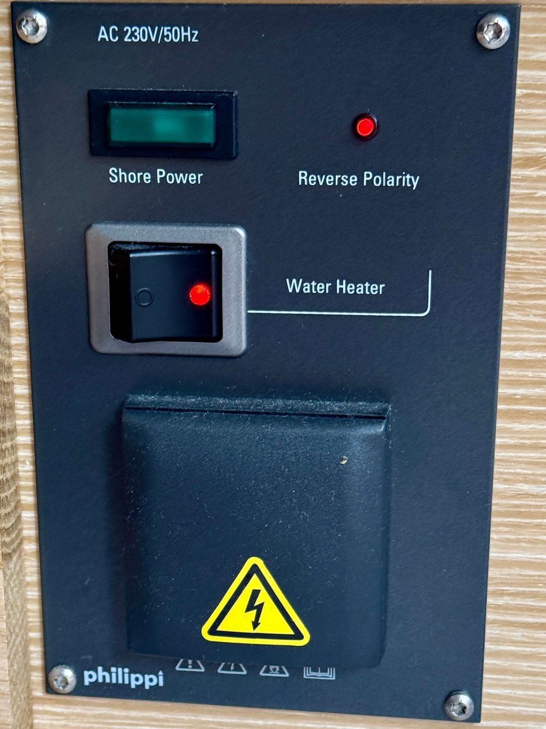 Engines Number of identical engines 1 Main engine Brand Yanmar Serial number E19870 Year 2021 Power 57 hp Engine hours 630 Fuel diesel Drive Propulsion adjustable screw Cooling system indirect Tank Fuel tanks Total fuel tank(s) capacity 210 litre Performance Max speed 9 knots Cruising speed 6 knots Measuring instruments Fuel tank gauge Tachometer Bow and stern thruster Bow thruster electric Stern thruster electric Electricity Battery Battery charger Alternator Capacity 125 Inverter Capacity 2000 Voltmeter Shore power 12V 24V 220V -